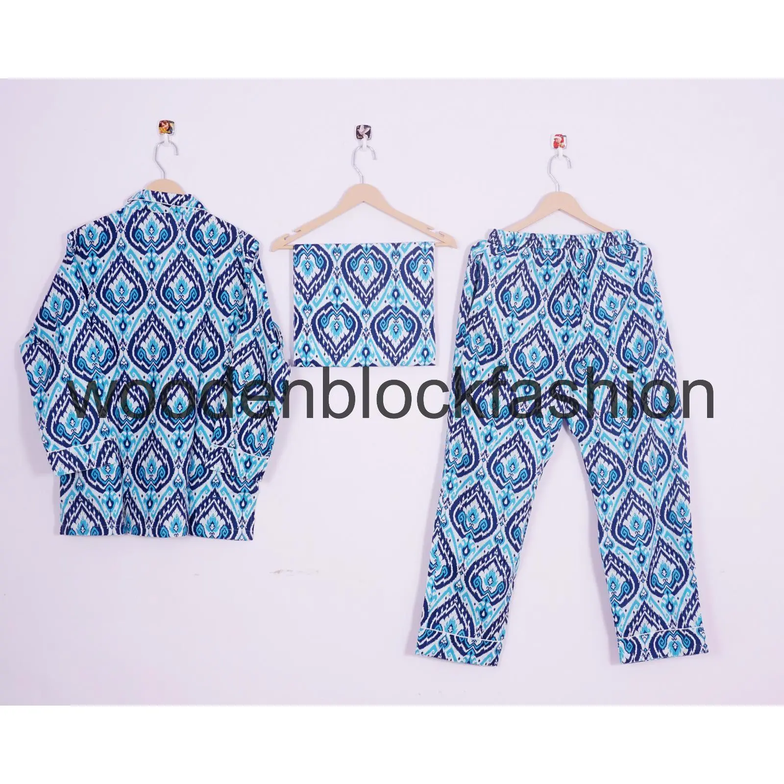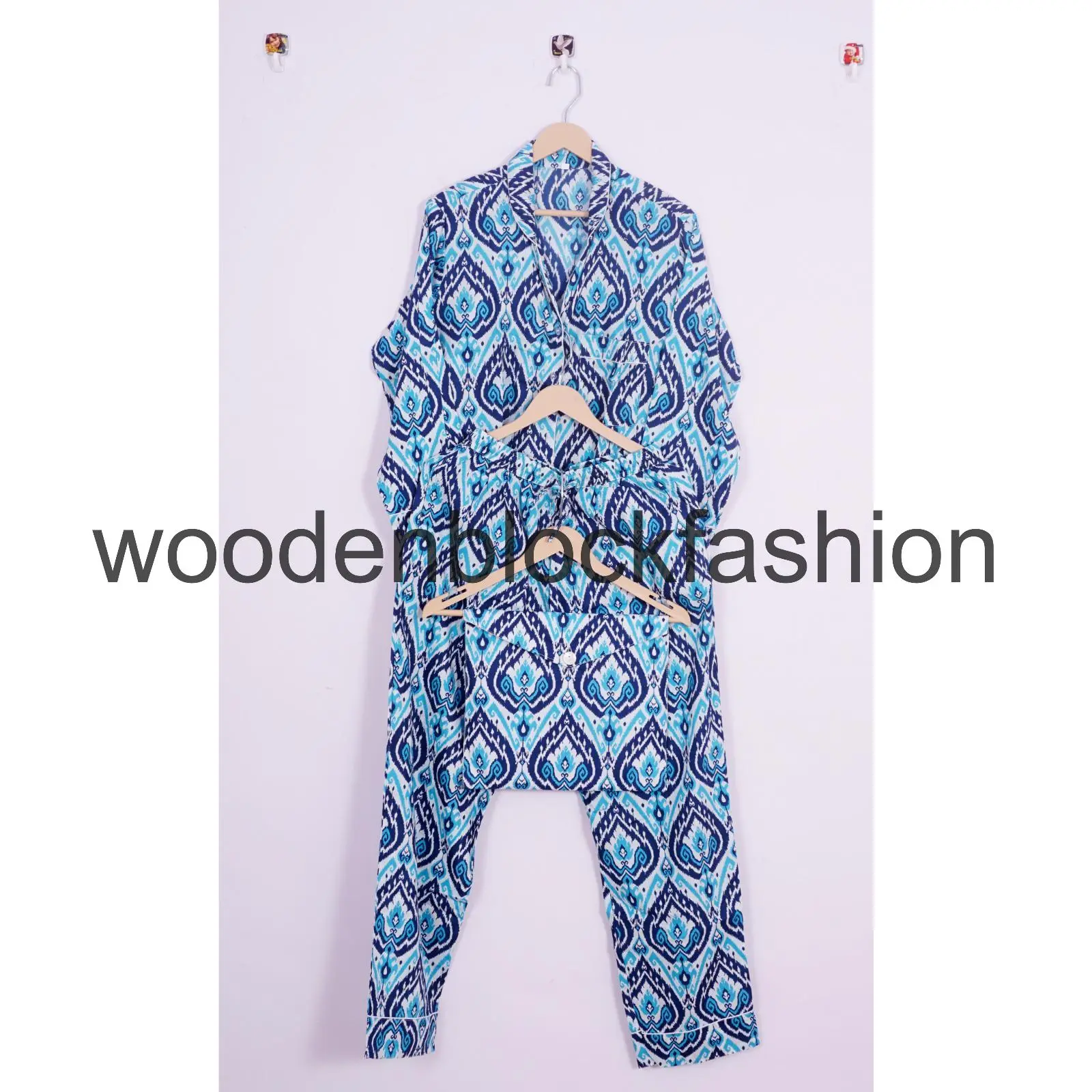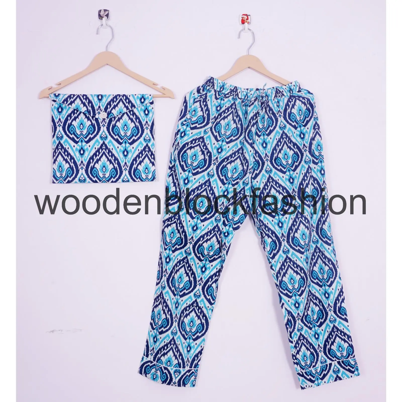 Ikat Printed Cotton Pajama Set: Indian Summer Night Suit