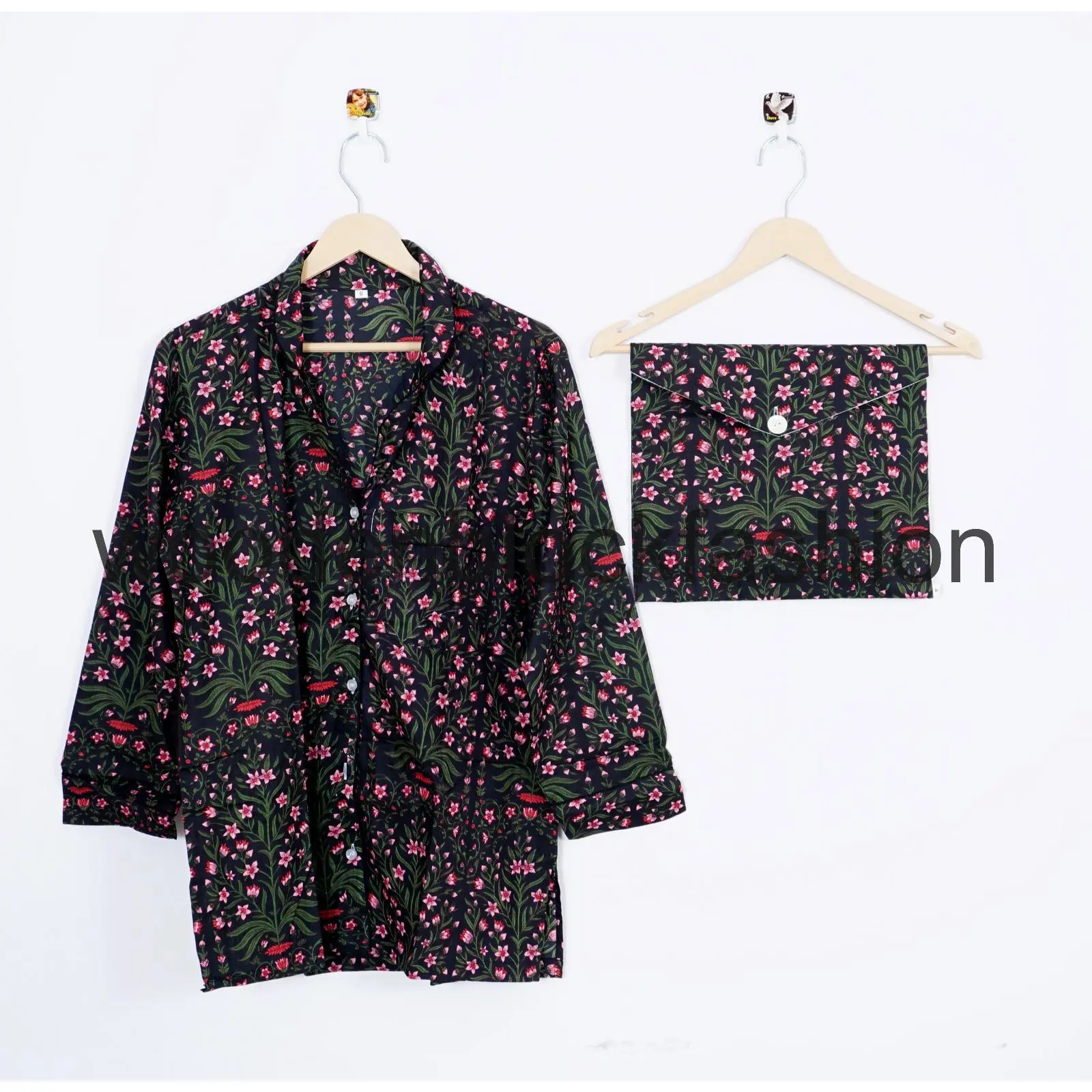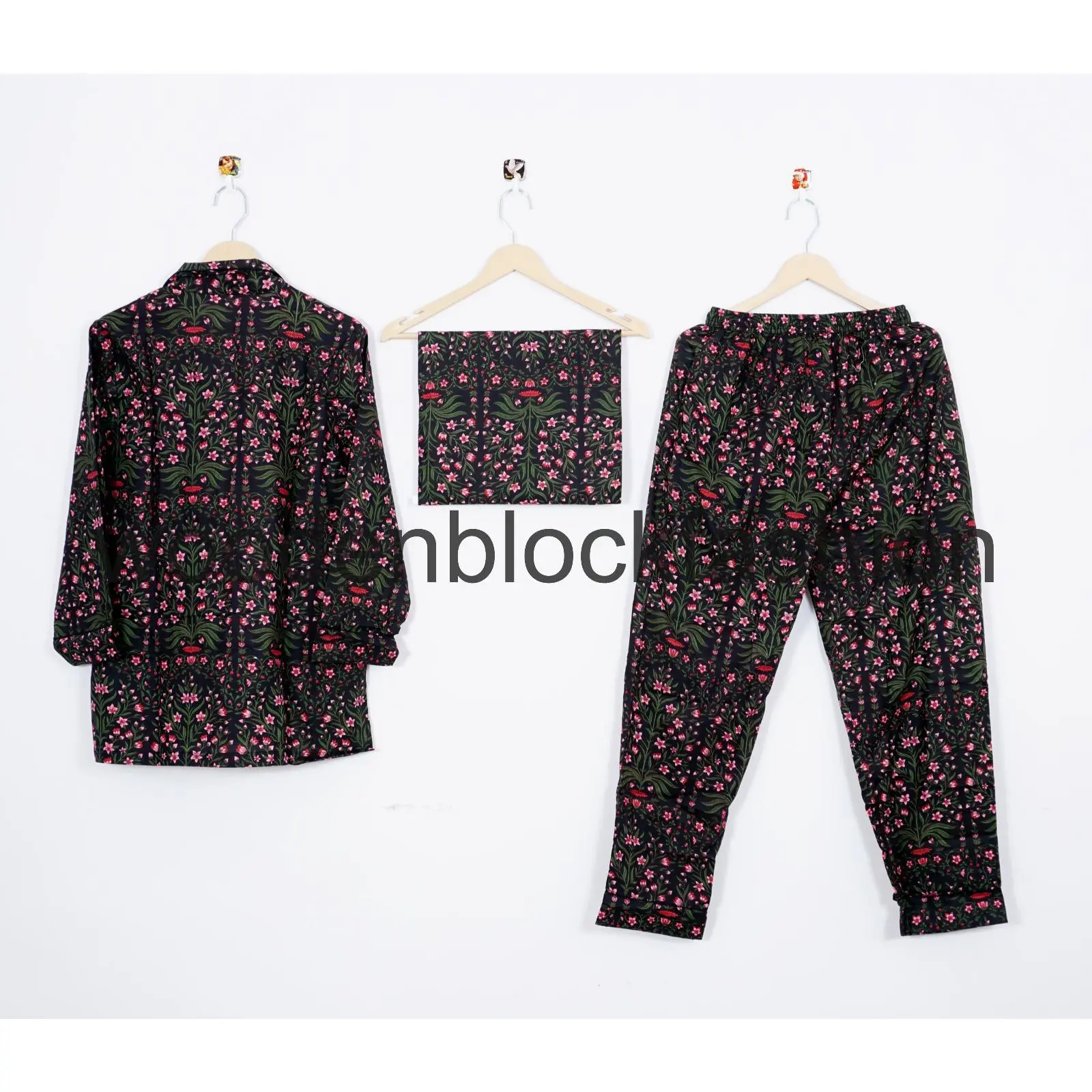 Hand Block Flower Print Cotton Pajama Set, Indian Lounge And Sleepwear