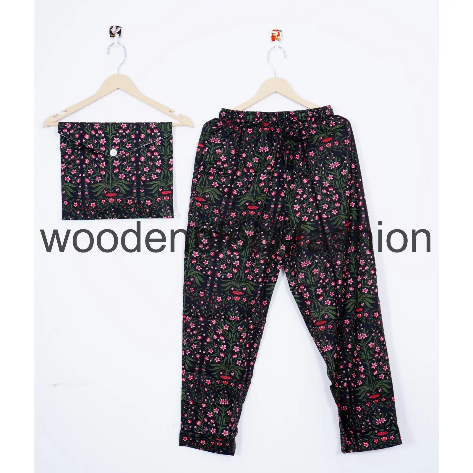 Cozy up in this handmade 100% cotton pajama set. With breathable fabric and matching trousers, this set is perfect for sleeping or lounging. The included bag adds extra practicality.