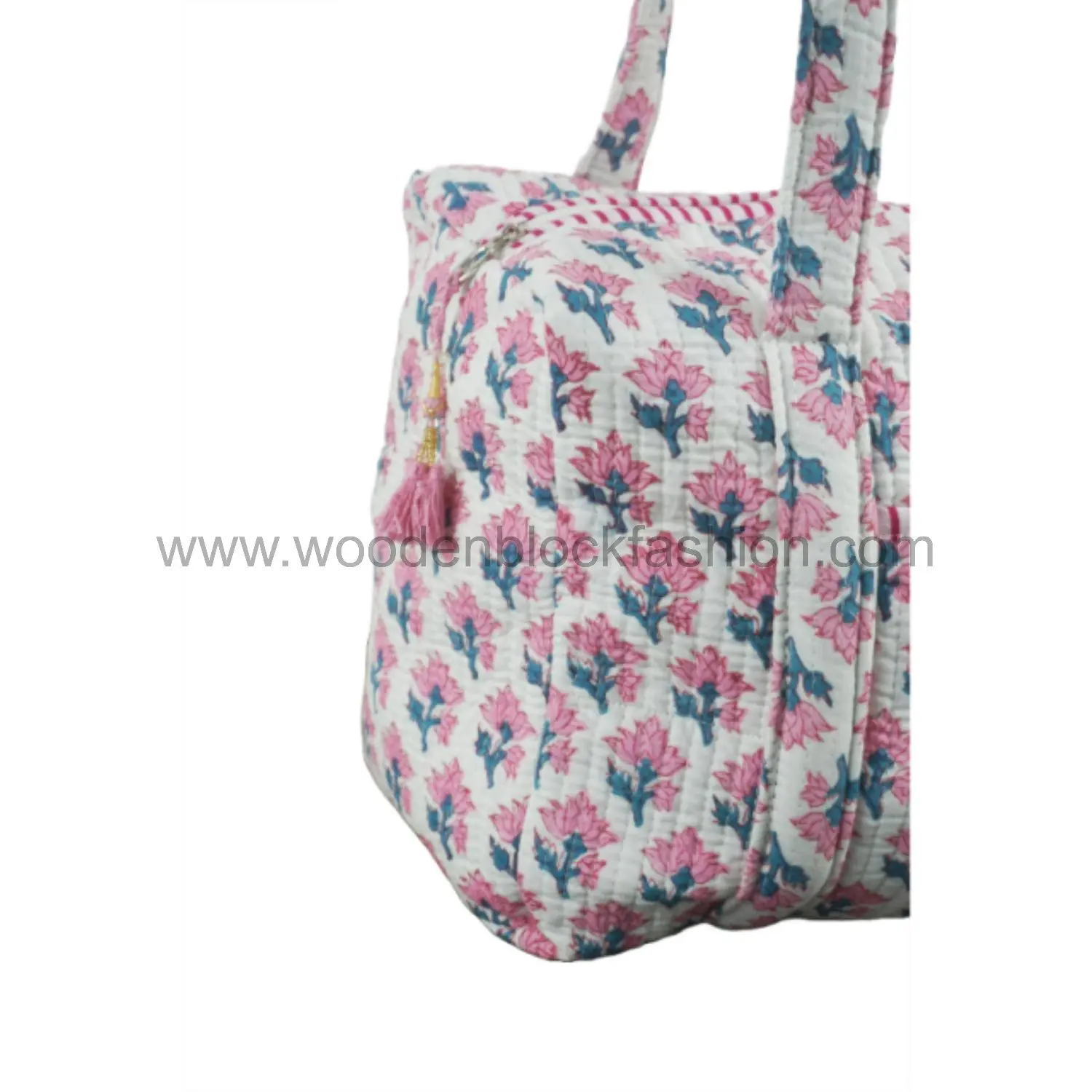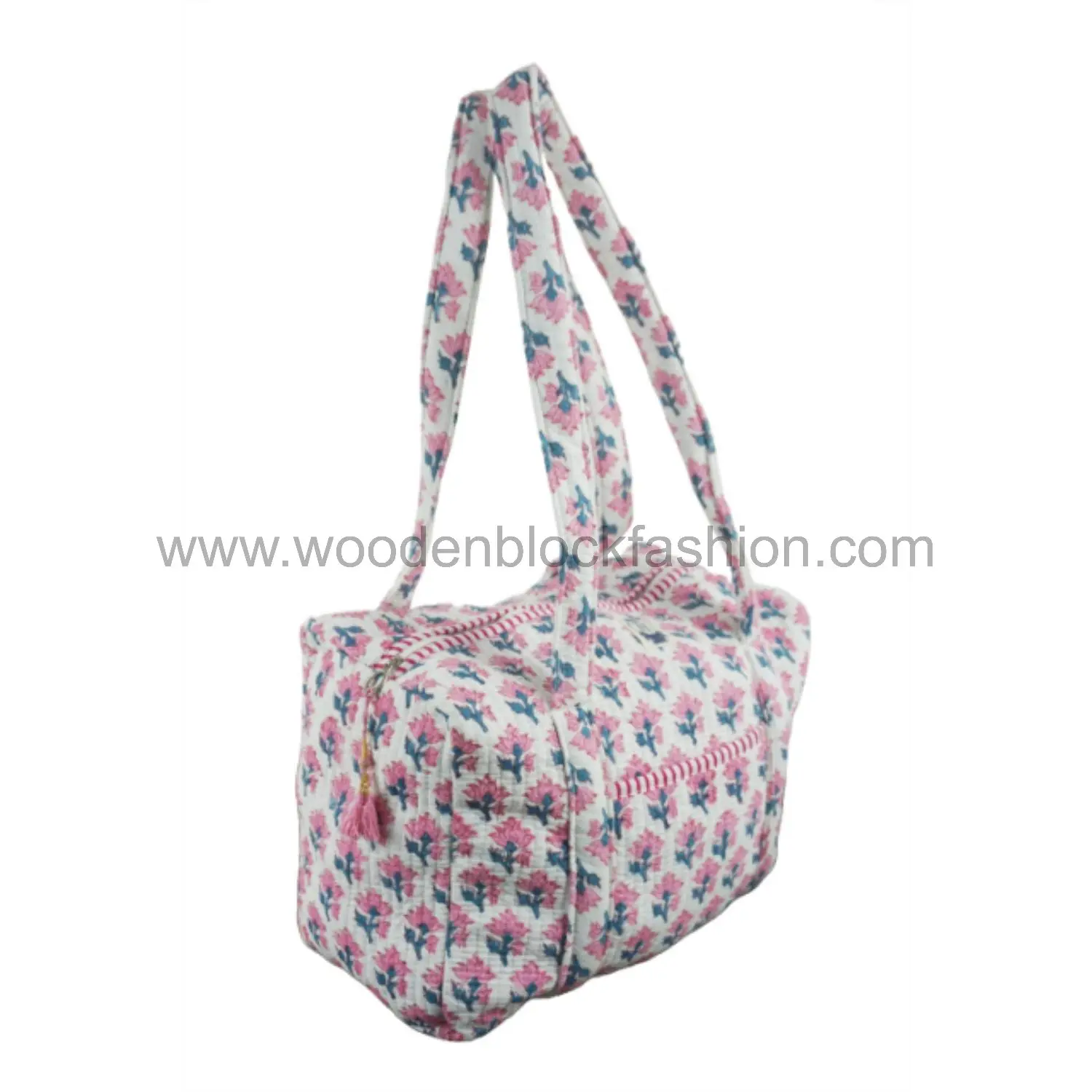 Block Printed Quilted Cotton Duffle – Women’s Overnight Weekender Bag