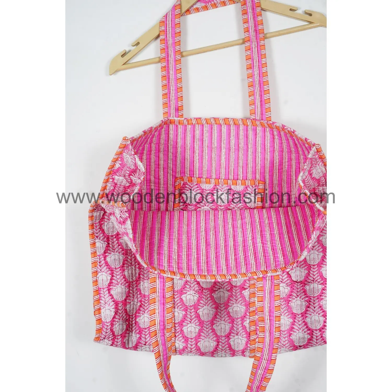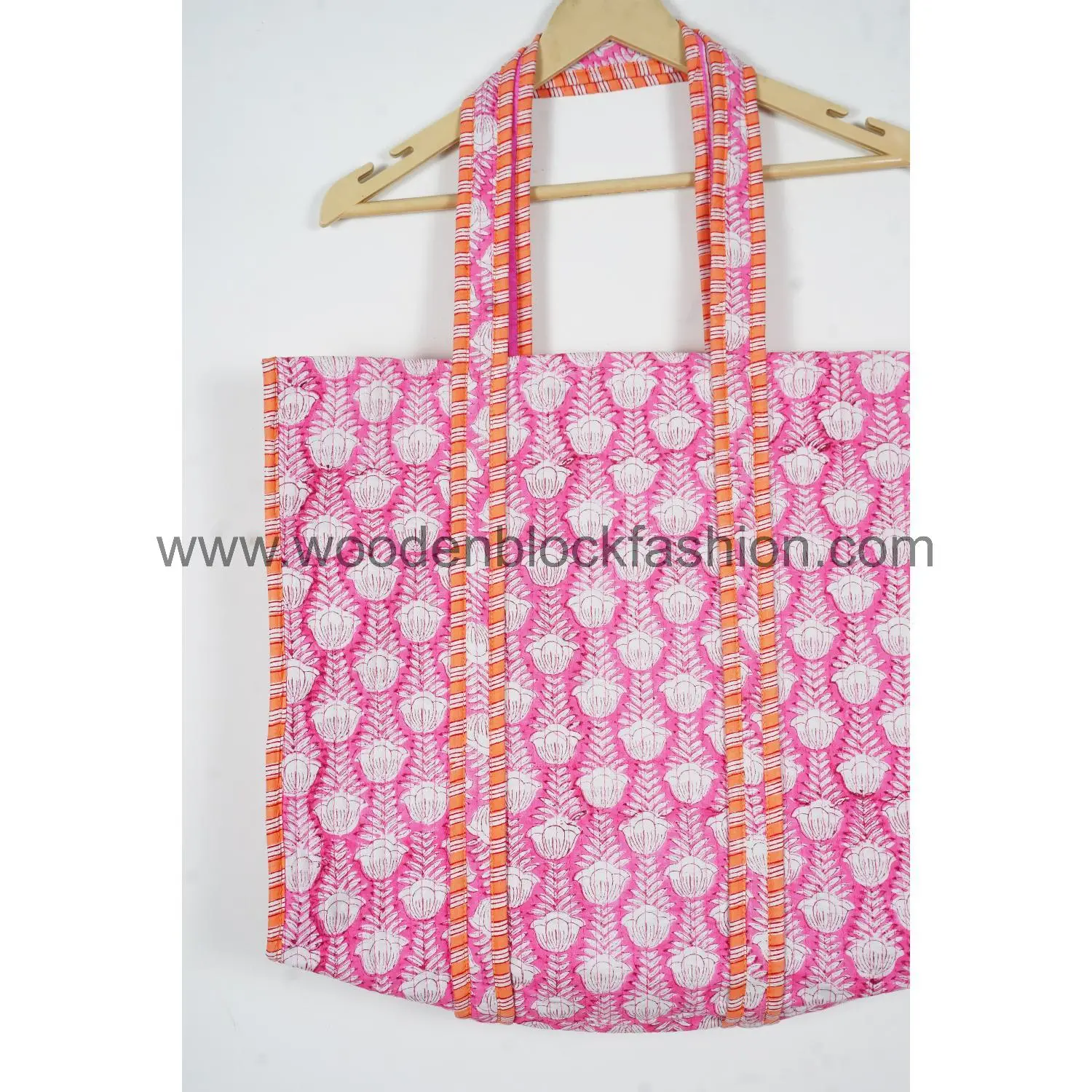 This artisan quilted cotton tote bag is handmade using traditional Indian block printing, offering durability, style, and eco-friendly appeal.