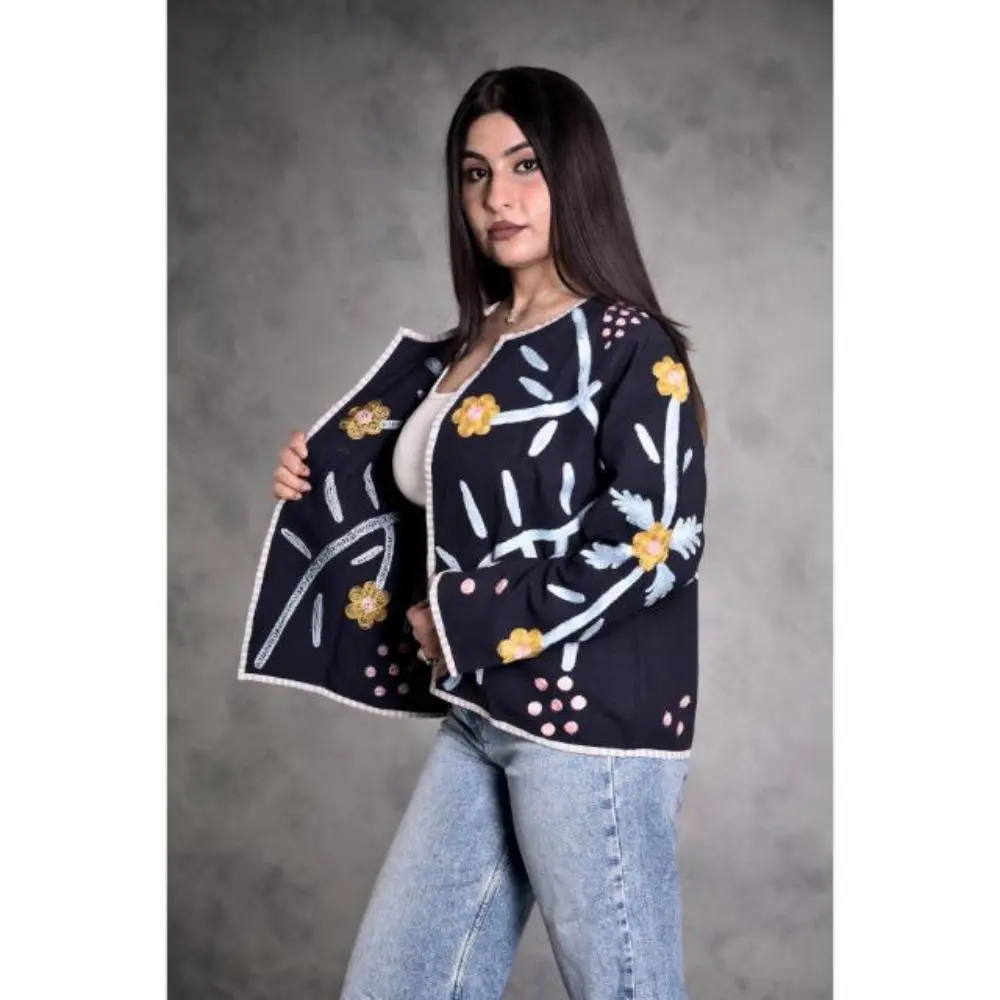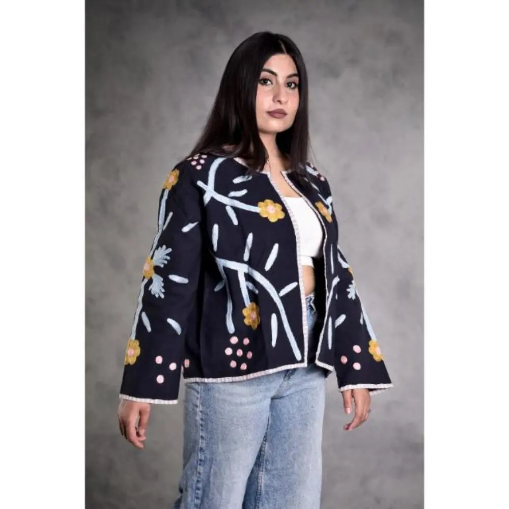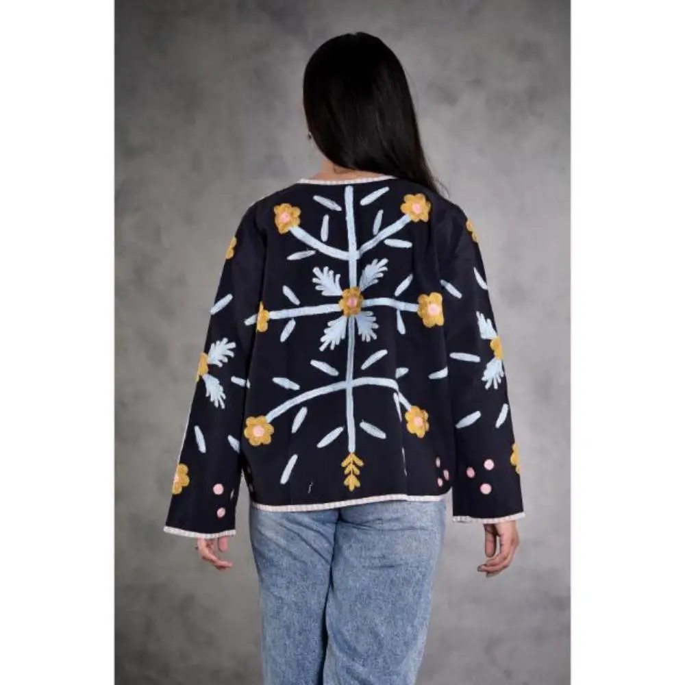 Duck Suzani Embroidered Women's Jacket, Vintage Floral Outerwear