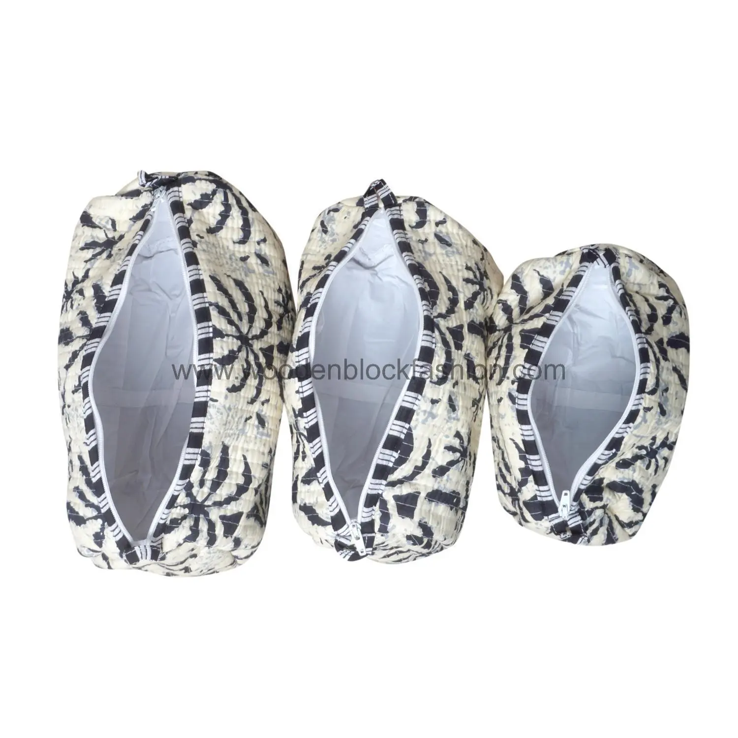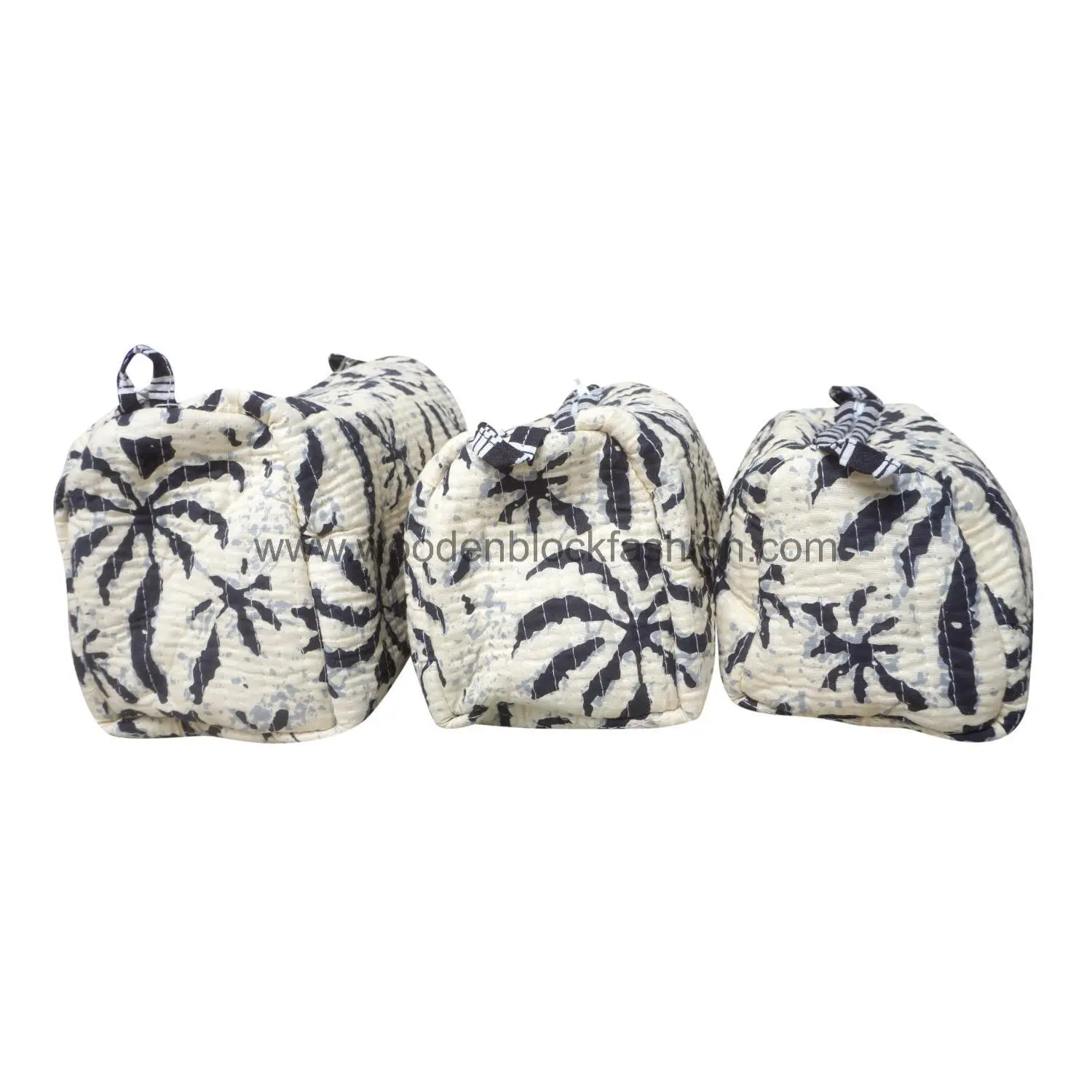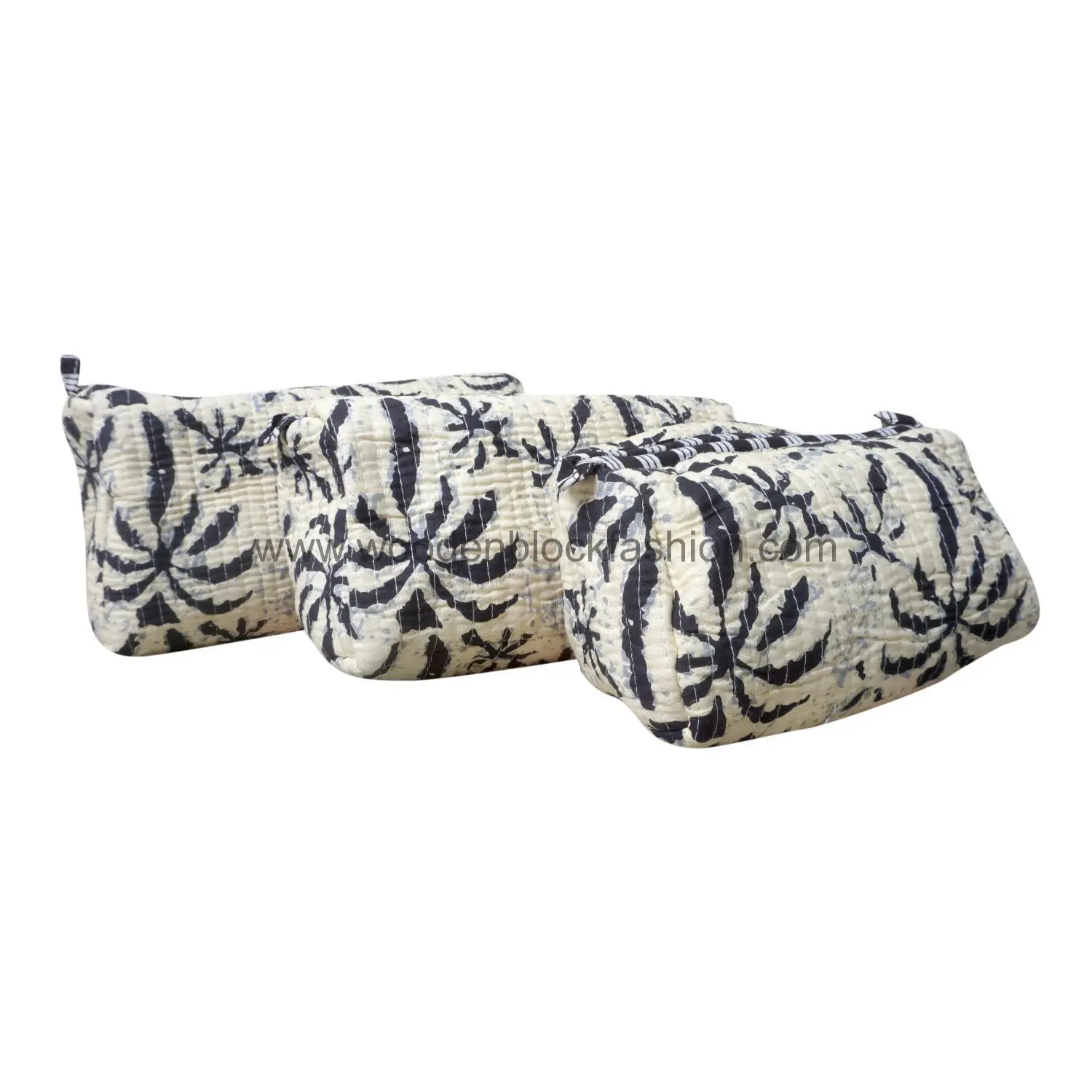Keep your makeup and toiletries neatly organized with this quilted cosmetic bag set. Handmade with attention to detail, each block print pouch is travel-friendly and stylish. Ideal for weekend getaways or everyday storage, this trio is a must-have for beauty and organization enthusiasts.