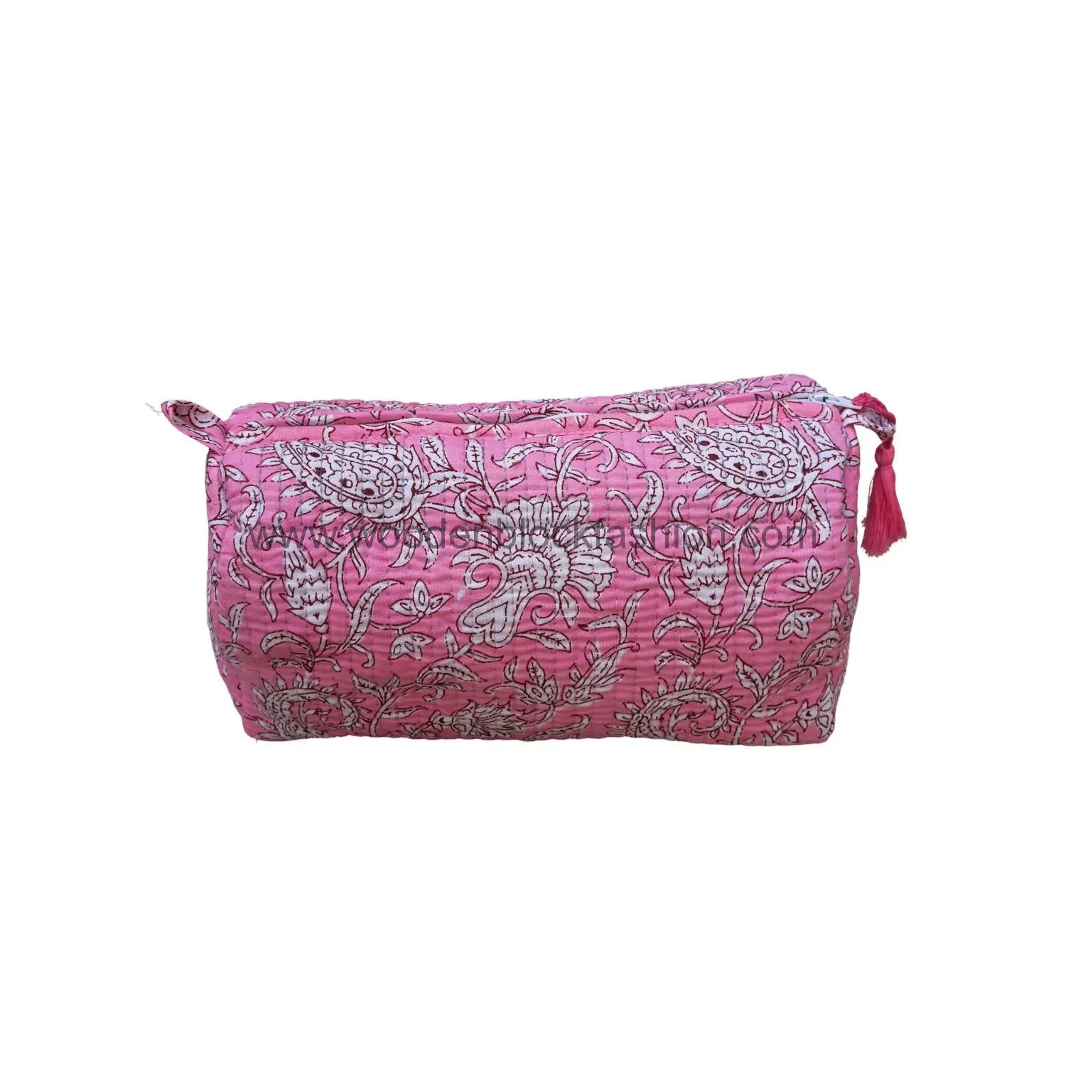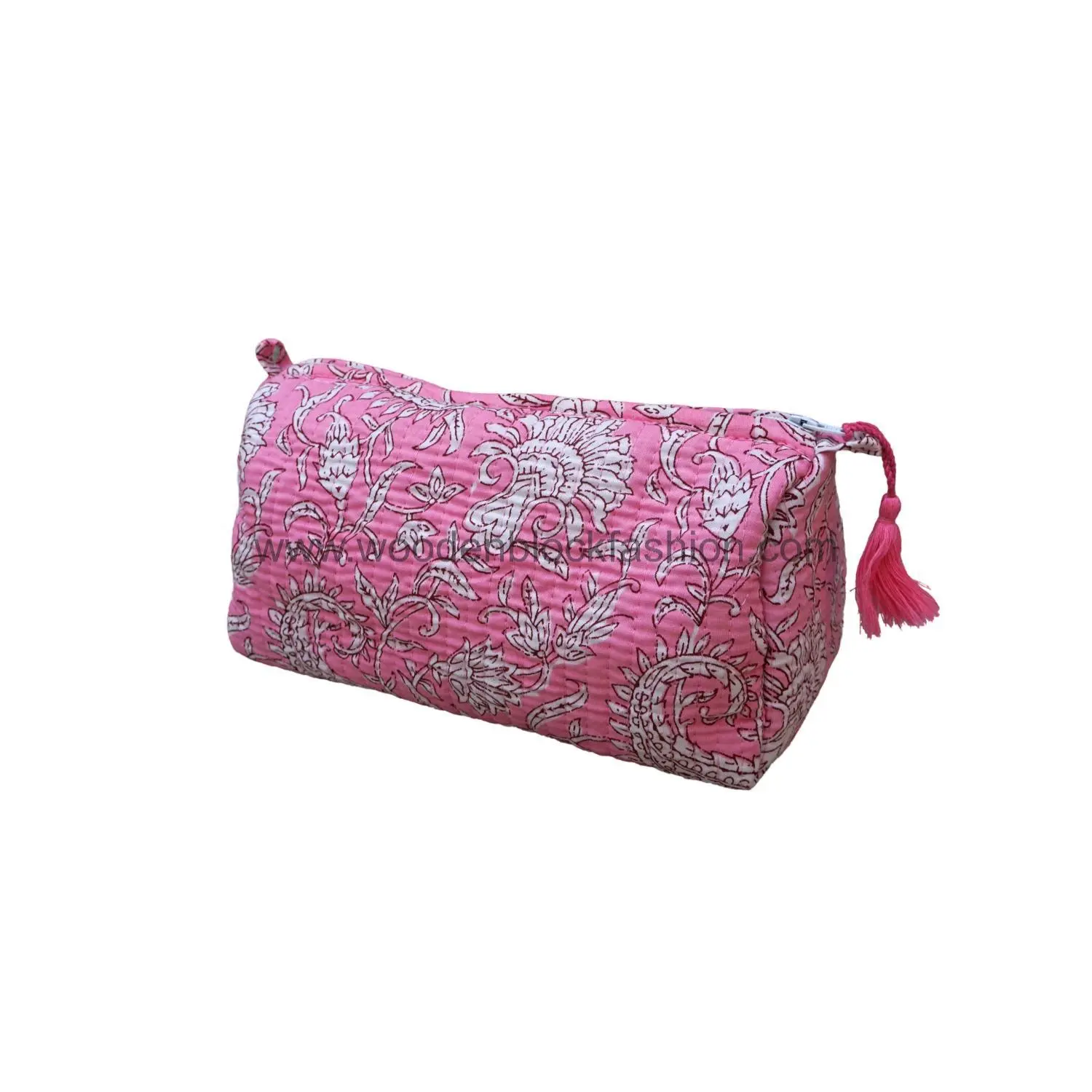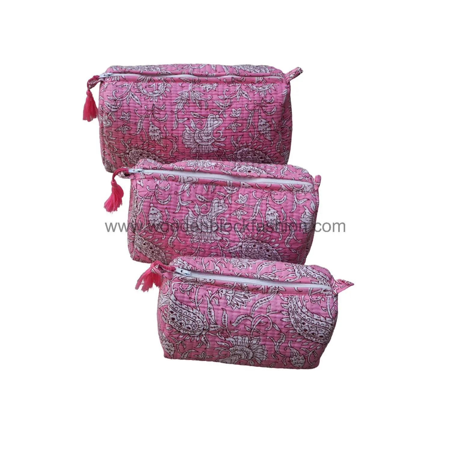 Block Print Quilted Cosmetic Pouches – Travel Set of 3