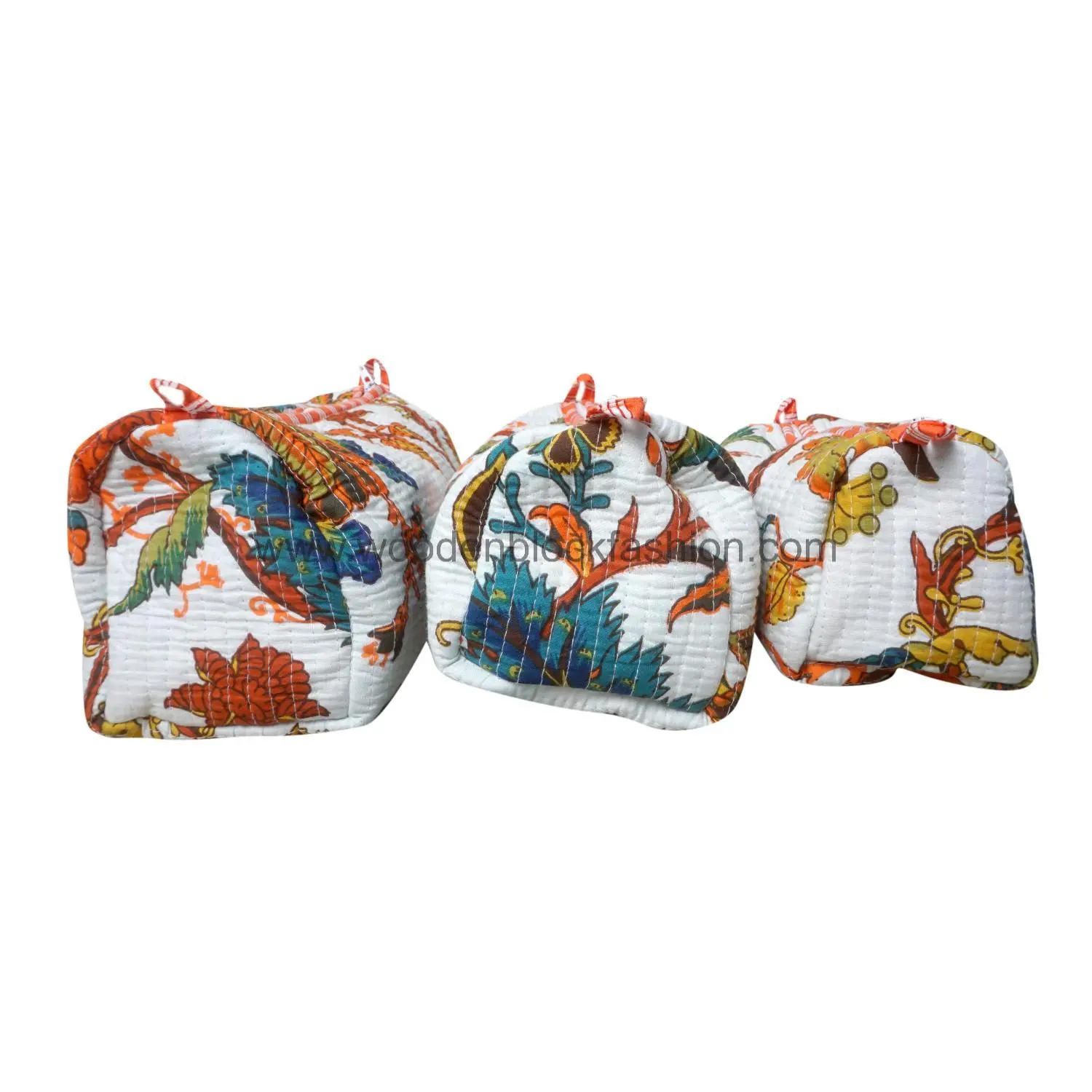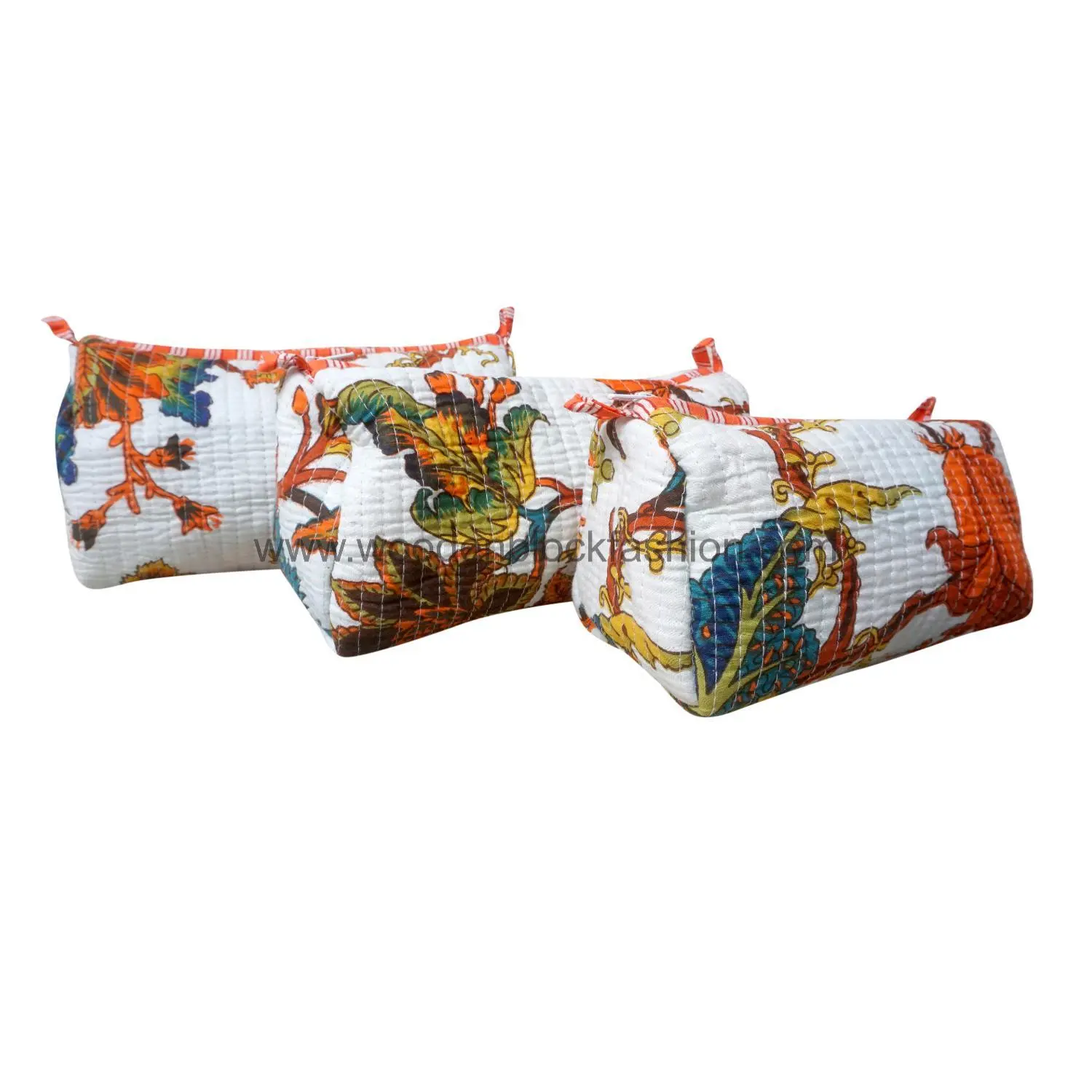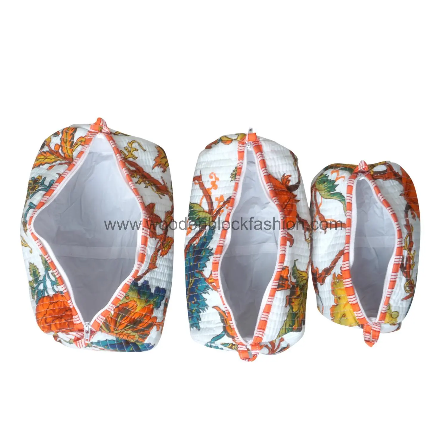 Handmade Block Print Quilted Cosmetic Bags | Waterproof Makeup Travel Set