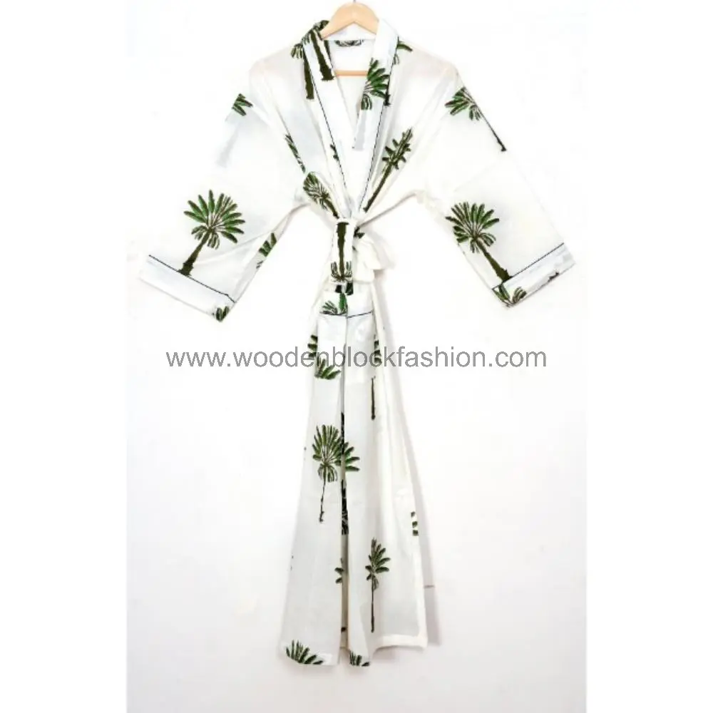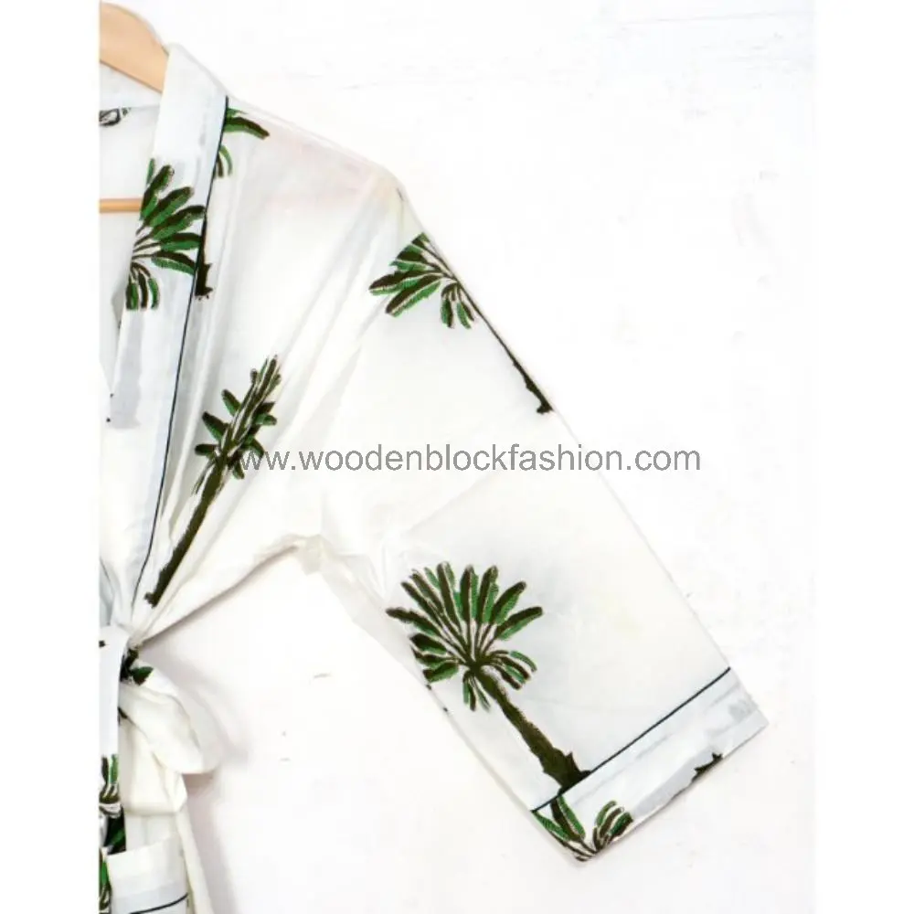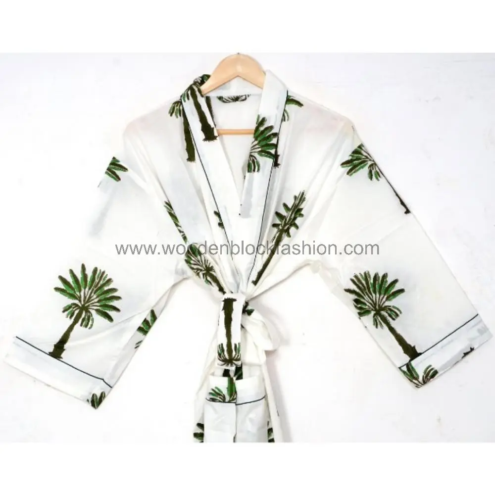 Summer Cotton Kimono Robe – Boho Block Print Bridesmaid Nightwear
