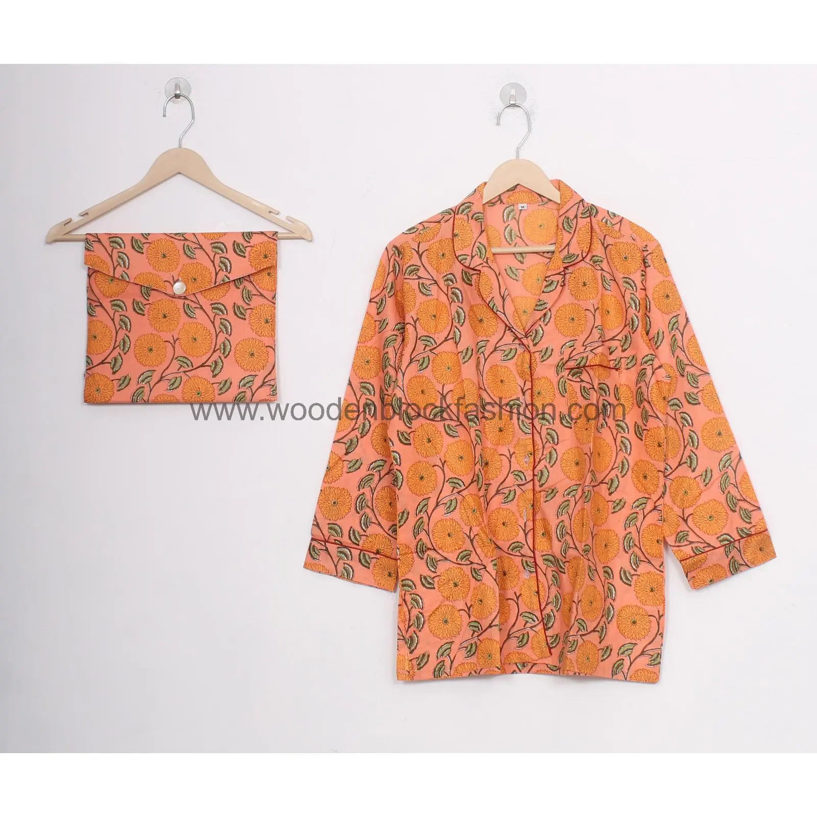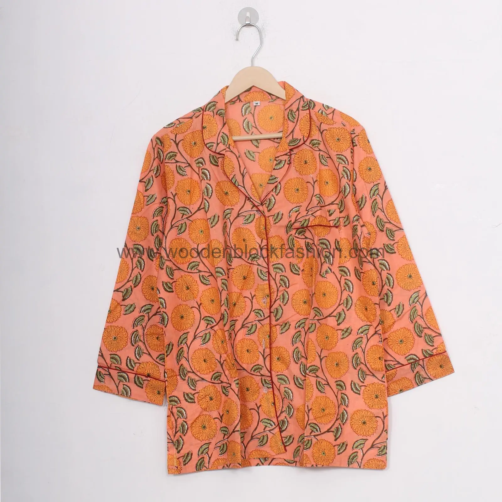 This Indian floral hand block print cotton night suit is crafted from soft, breathable cotton for all-night comfort.