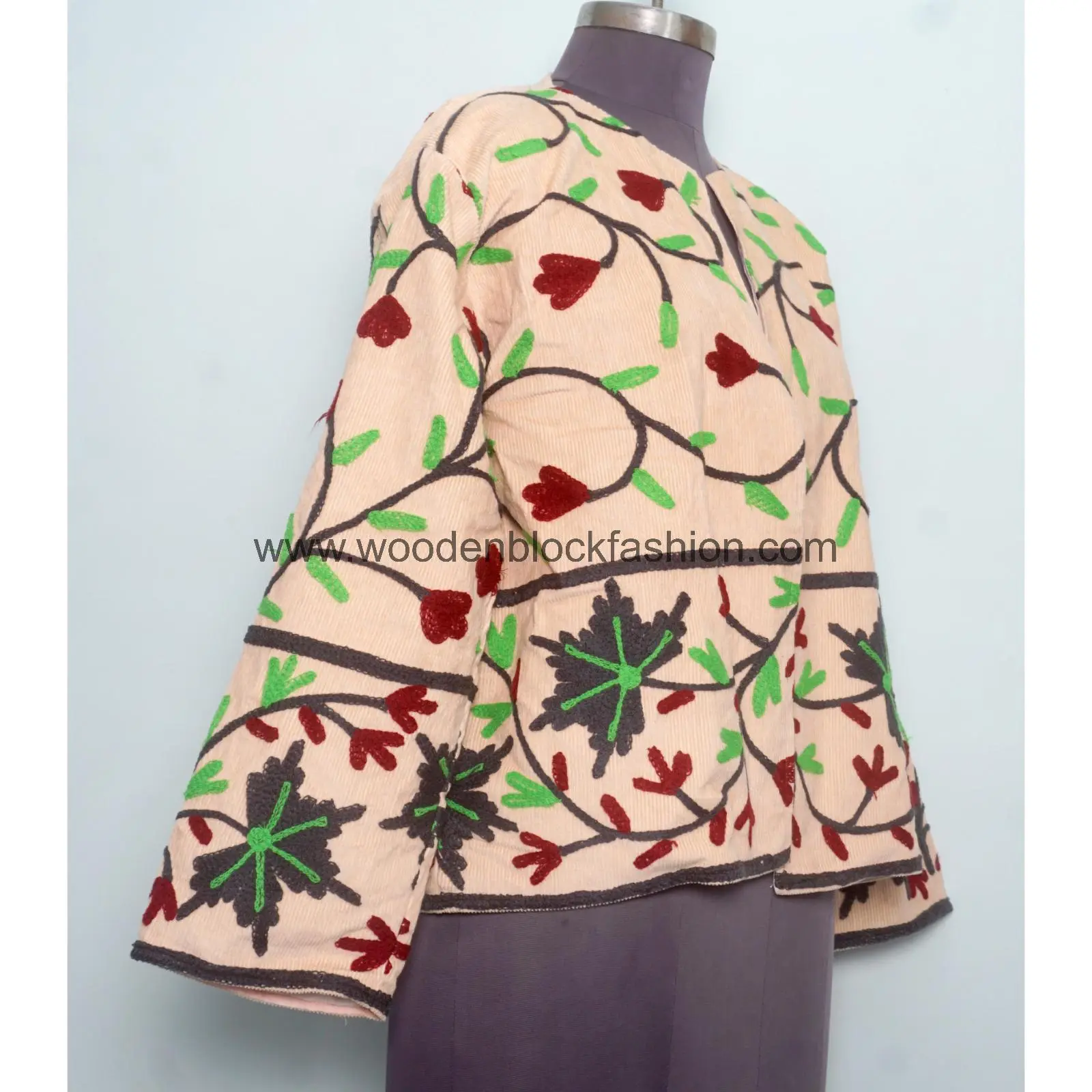 Indian Cotton Suzani Jacket, New Embroidery Cotrise Bomber Coat
