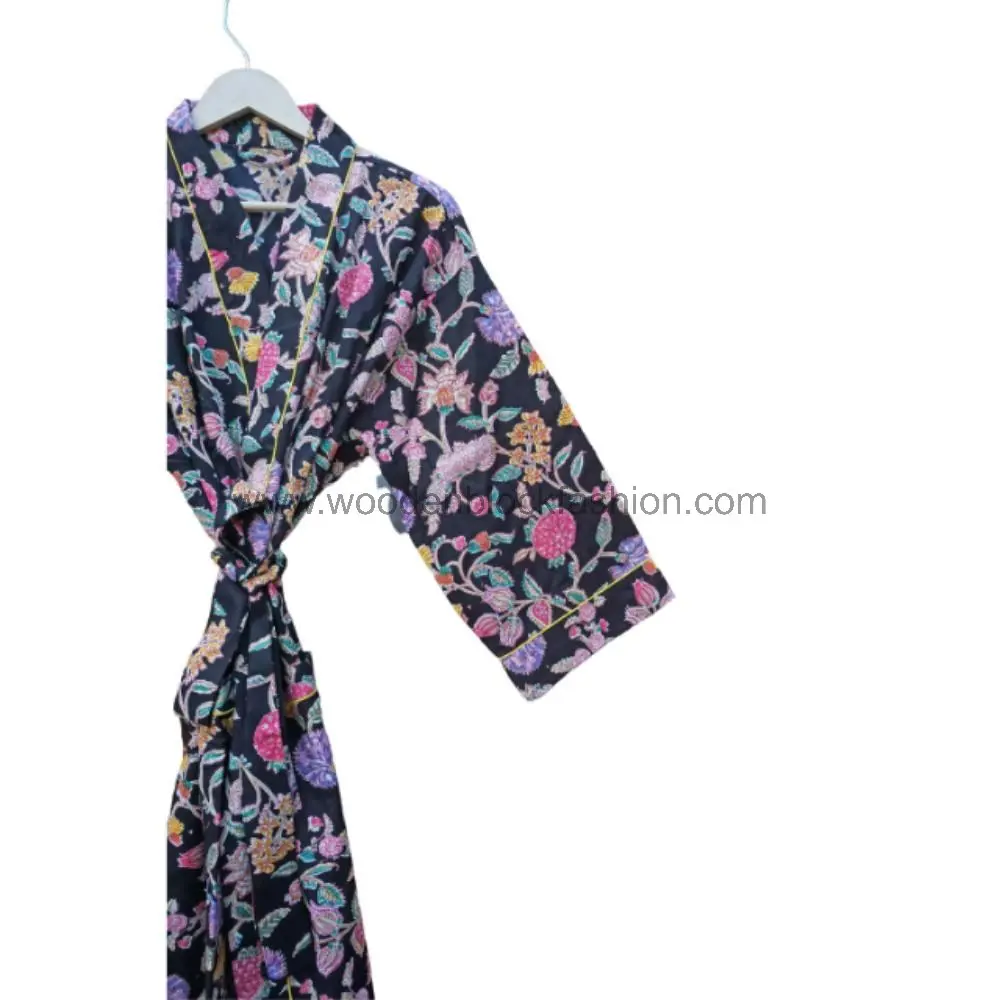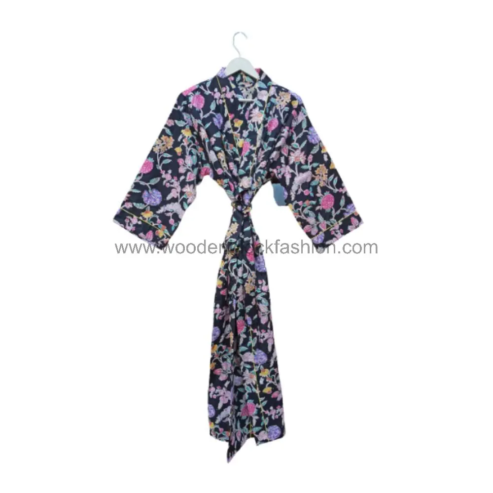 Lightweight cotton robe featuring traditional Indian hand block print. A perfect blend of comfort and elegance for lounging or travel.
