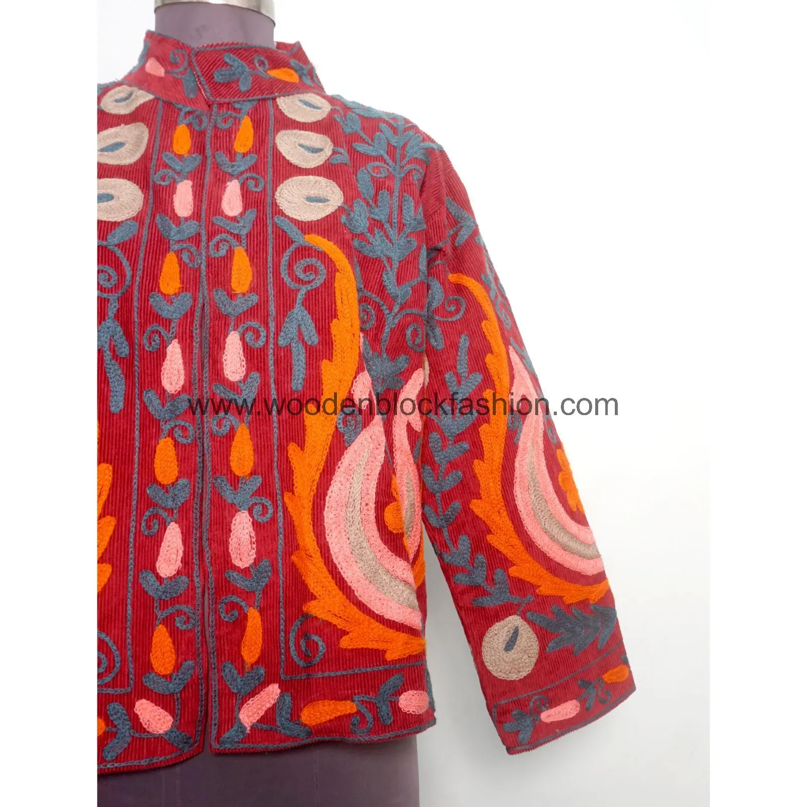 Premium Suzani Embroidered Cotton Bomber – Ethnic Inspired Design