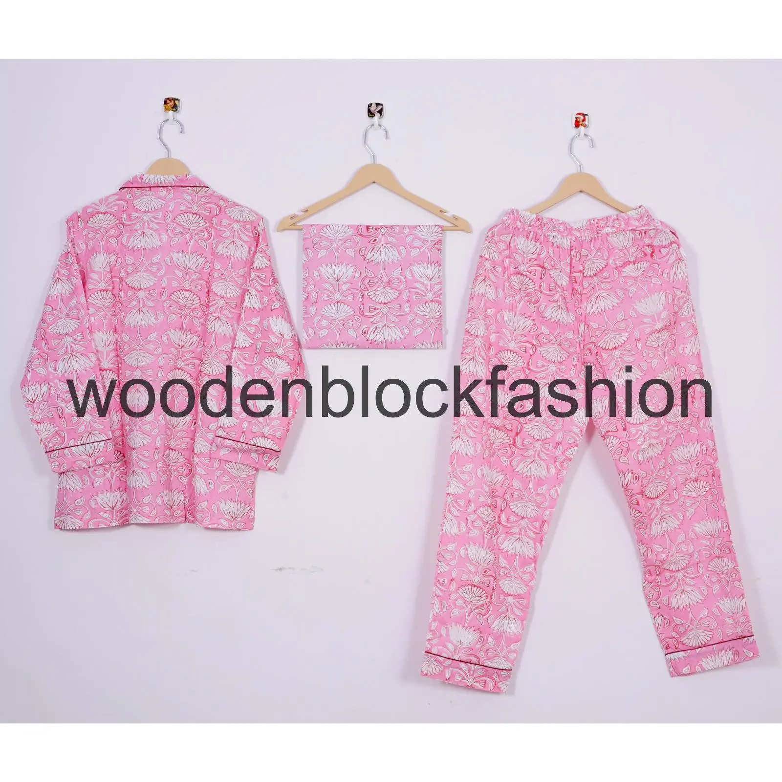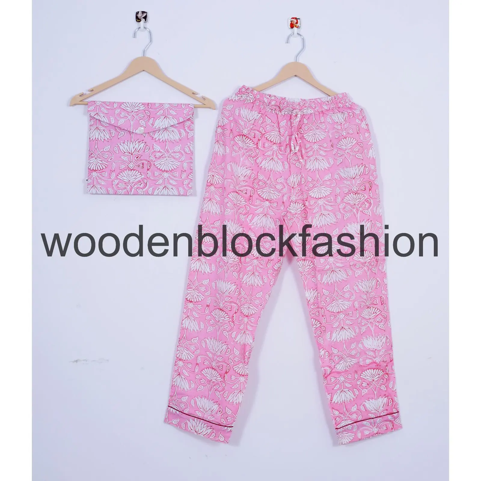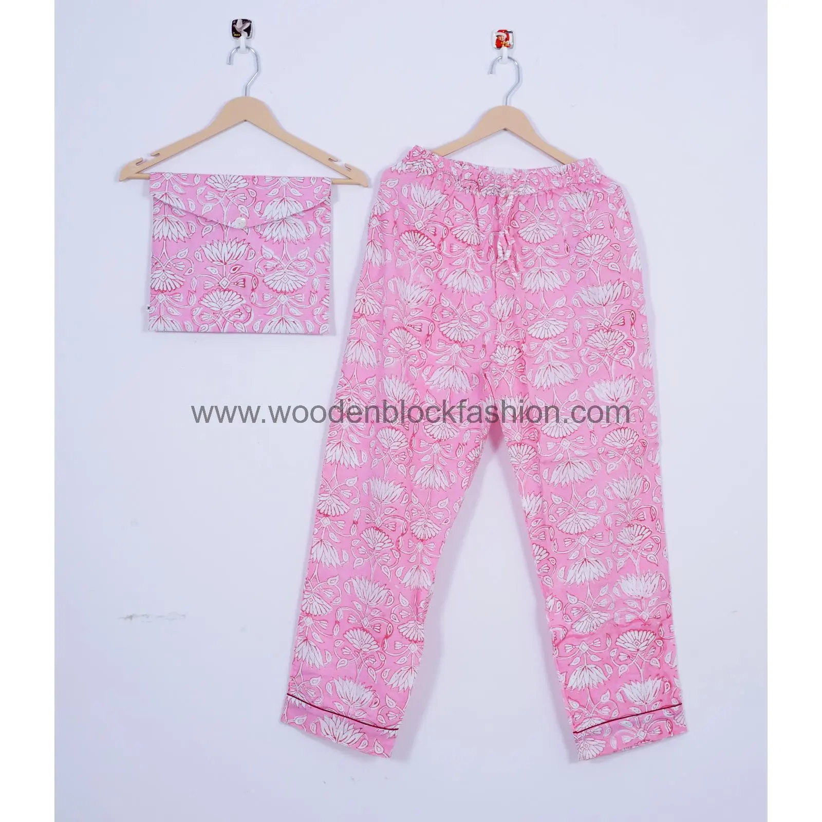 Experience skin-friendly comfort with this eco-friendly cotton pajama set made using artisanal hand block techniques.