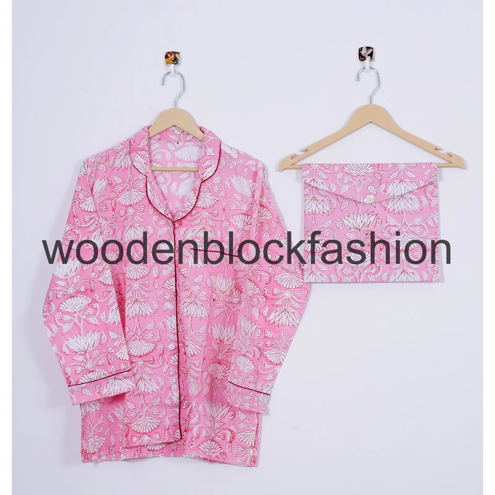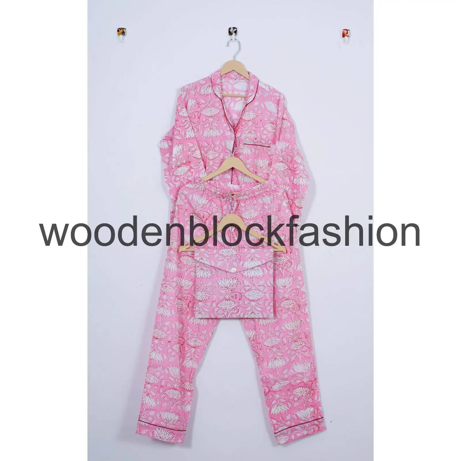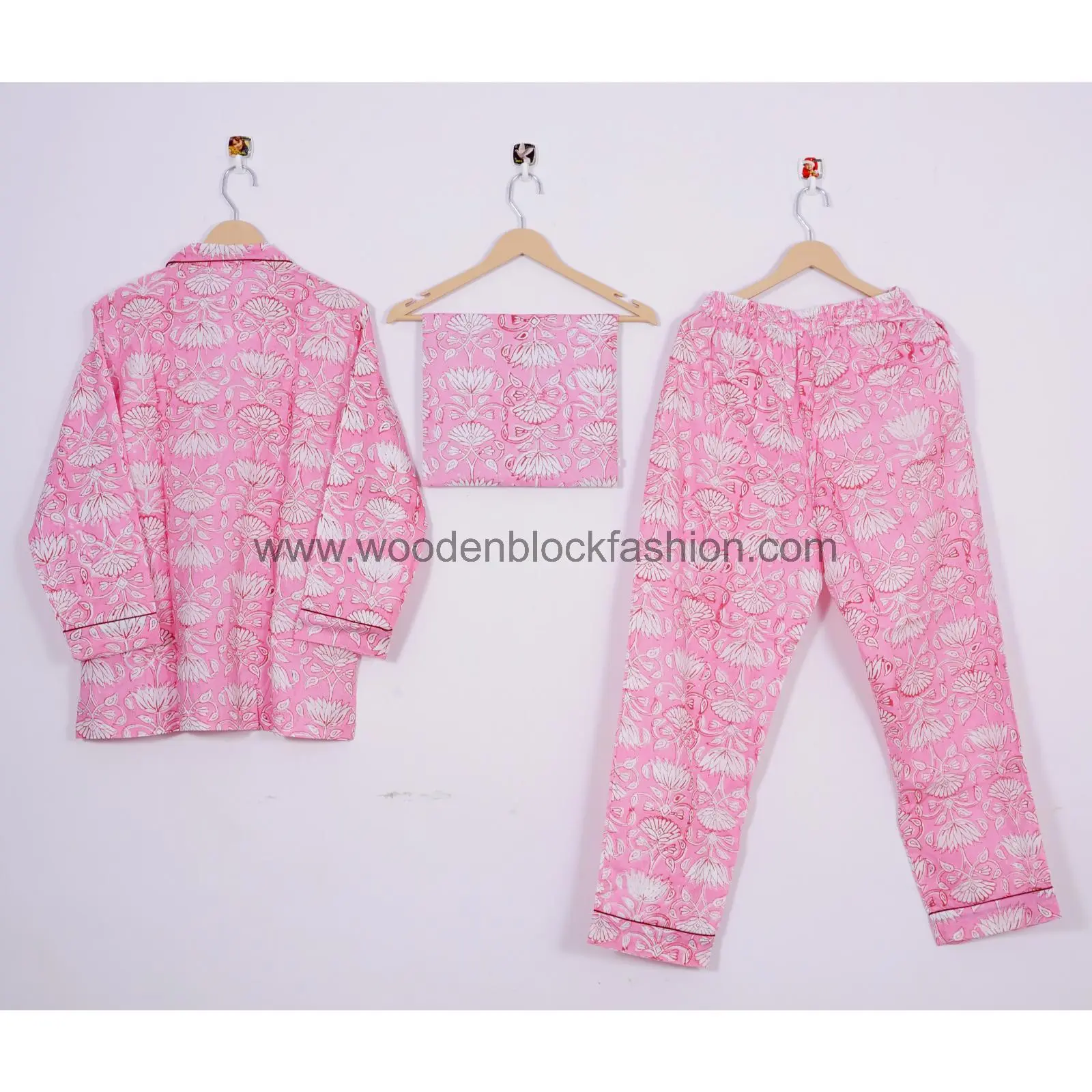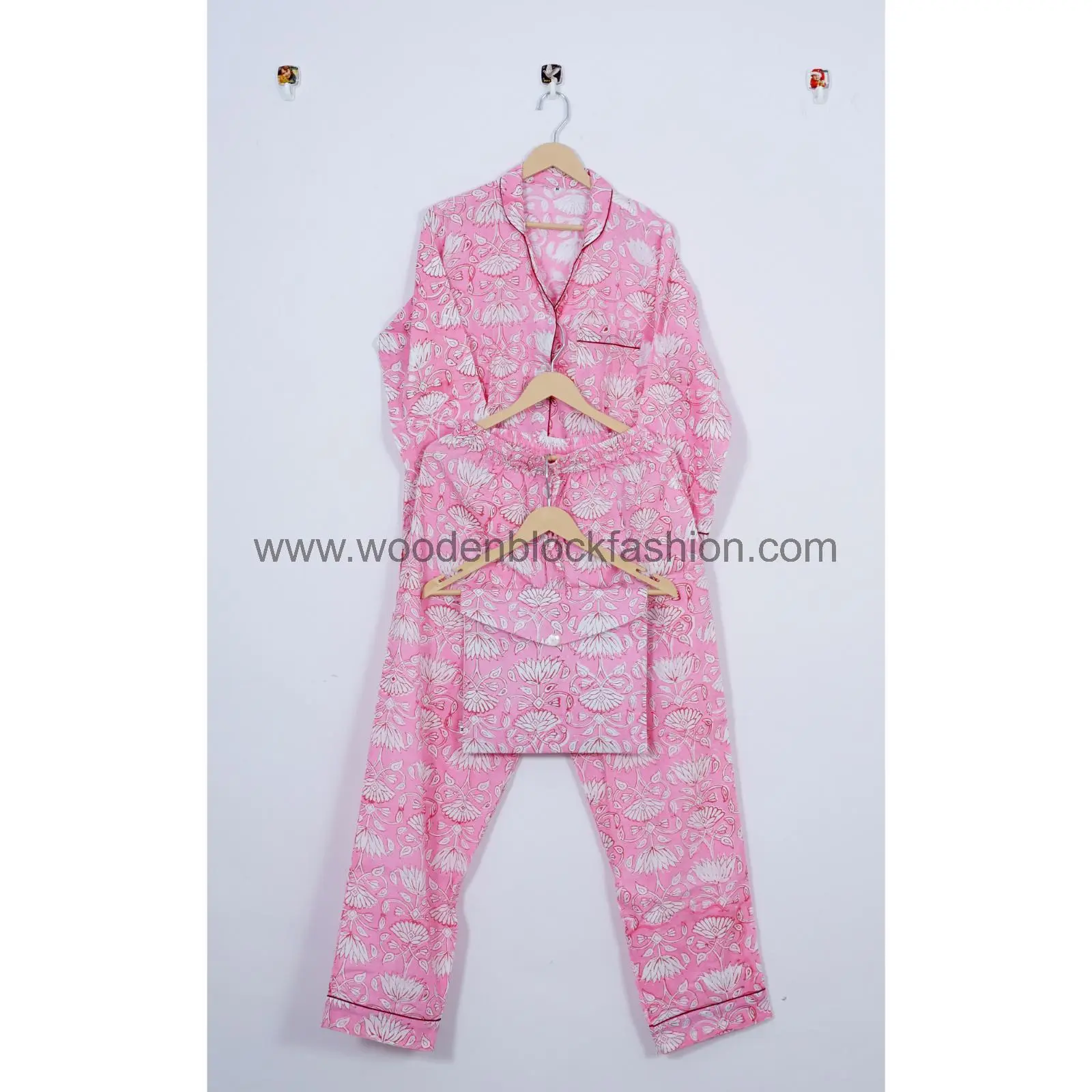 Experience skin-friendly comfort with this eco-friendly cotton pajama set made using artisanal hand block techniques.