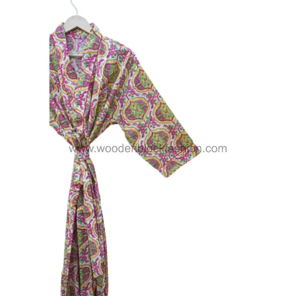 Floral Hand Block Print Kimono | Lightweight Holiday Robe