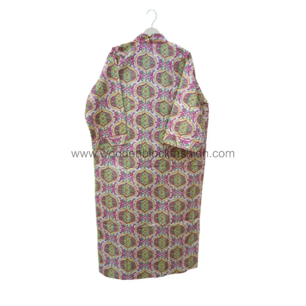 Handmade cotton kimono robe with a delicate floral print. This lightweight piece is ideal for summer evenings, beach cover-ups, and travel.