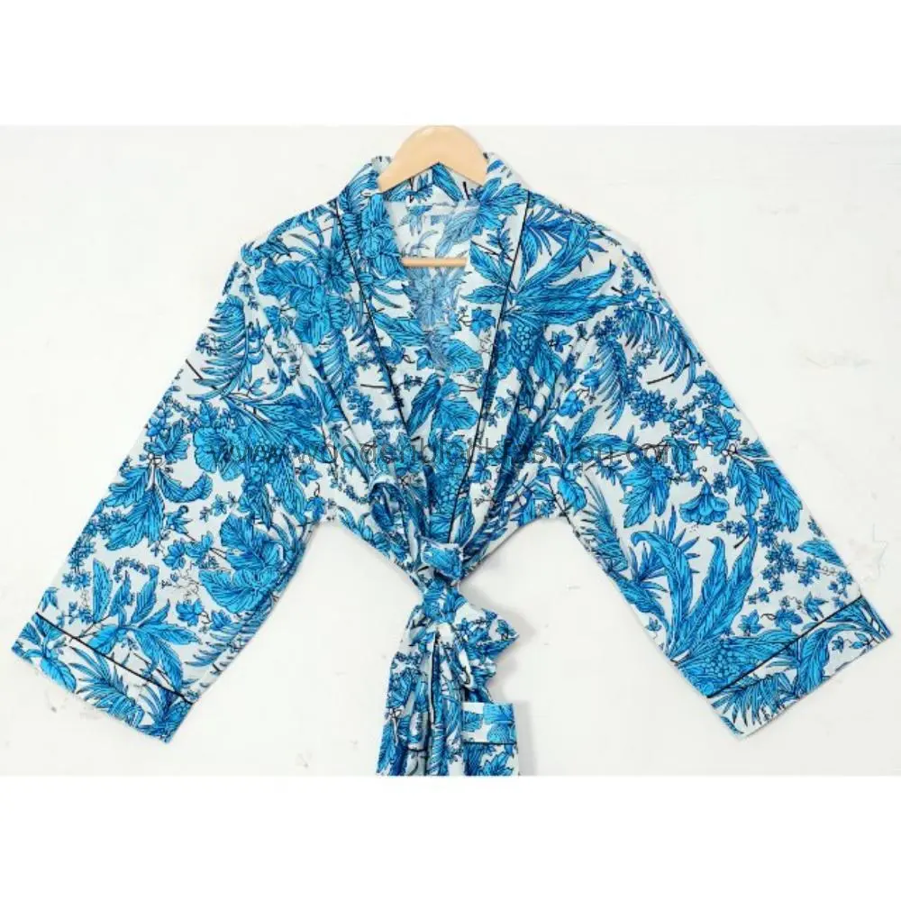Embrace boho elegance with this cotton kimono robe, hand block printed by skilled artisans. Lightweight and airy, it’s perfect for warm climates and relaxed lounging.