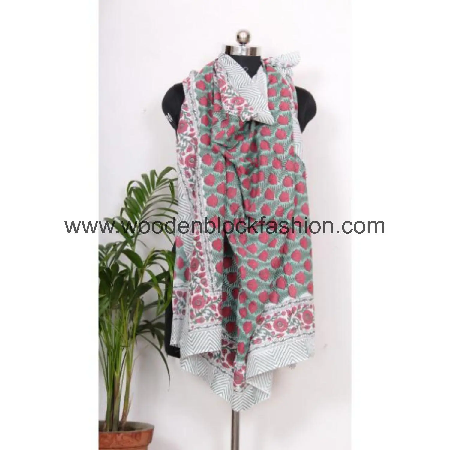 This breathable cotton beach sarong is ideal for hot climates. Hand block printed floral motifs add elegance and charm.