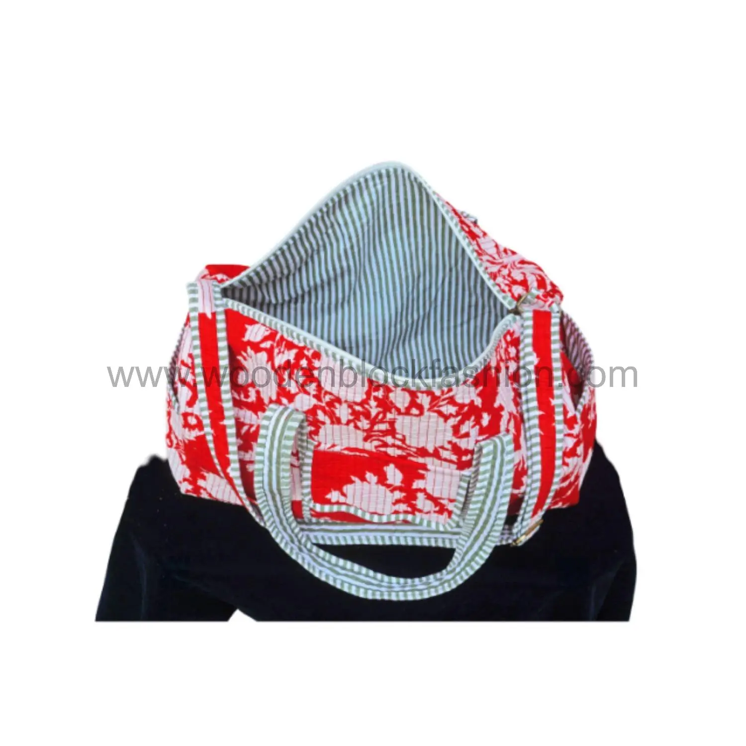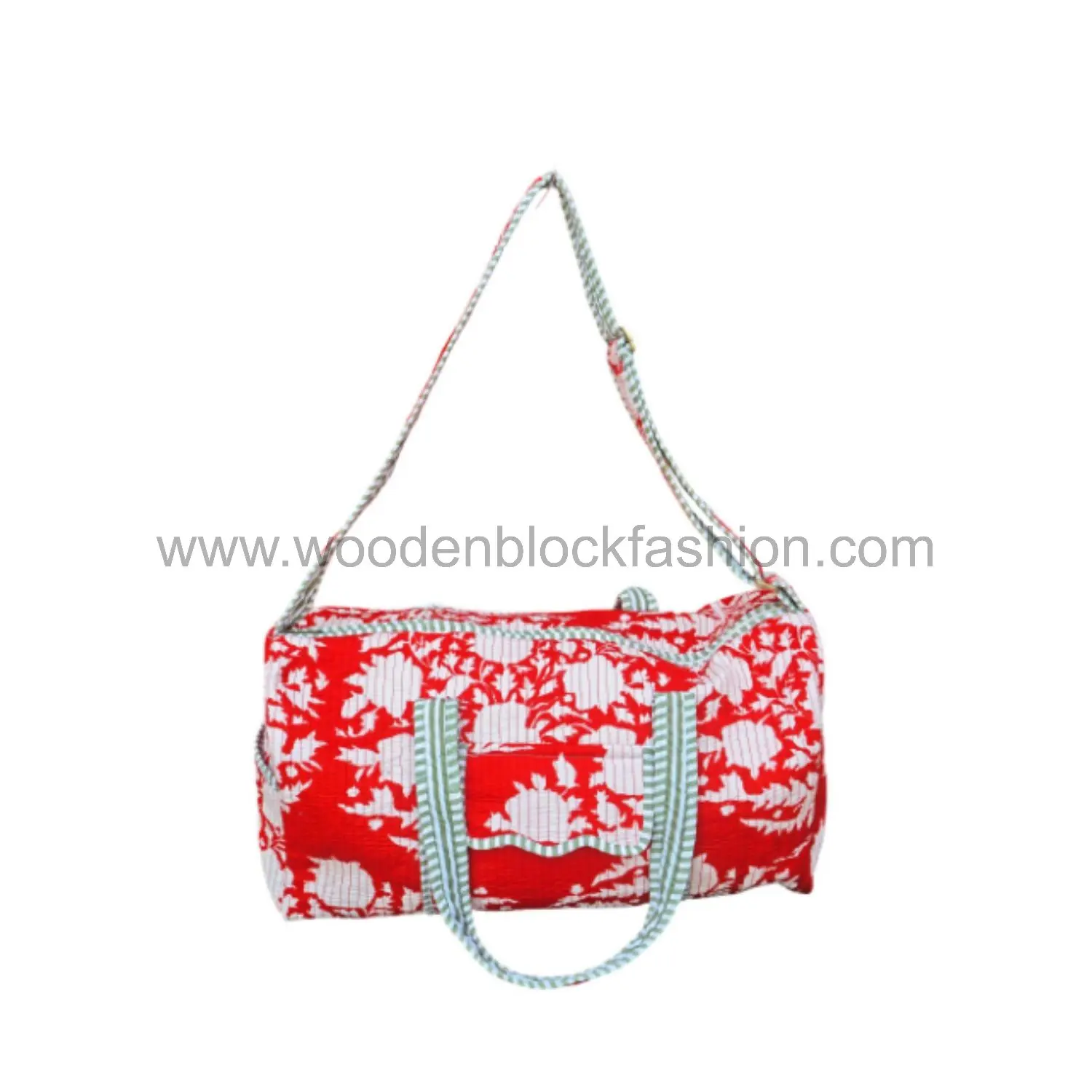 Weekender bag perfection: large enough to hold your essentials, with a soft quilted interior and beautiful handmade block print exterior.
