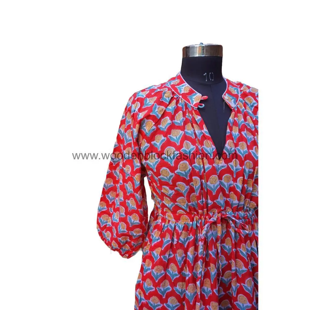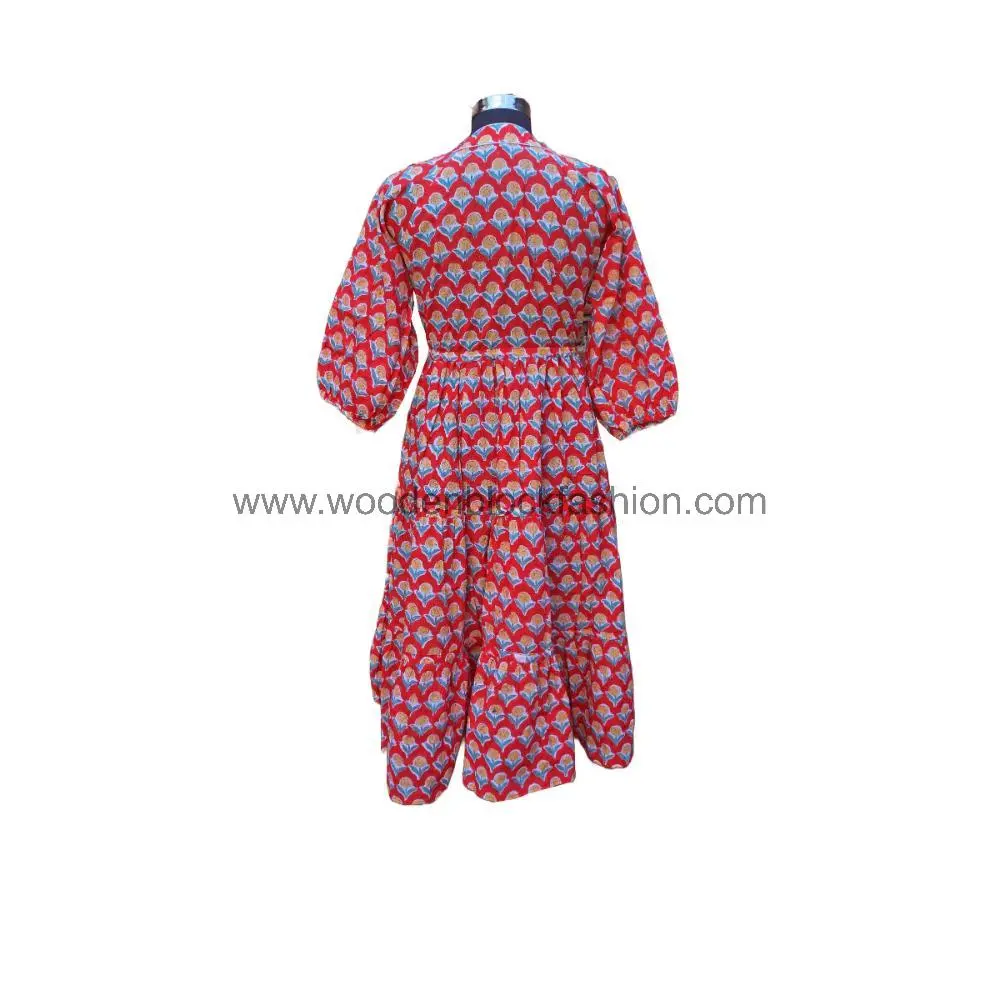 This classic long cotton dress features timeless block prints and a relaxed fit. Ideal for daily wear, travel, and casual summer occasions.