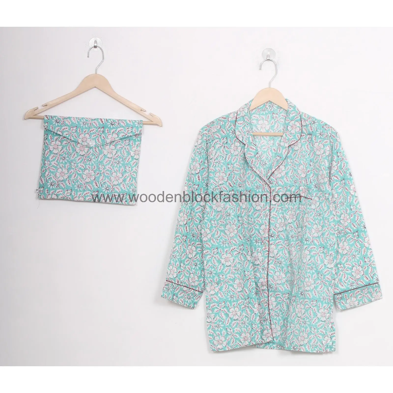 Sustainable Blue Floral Cotton Nightwear for Women