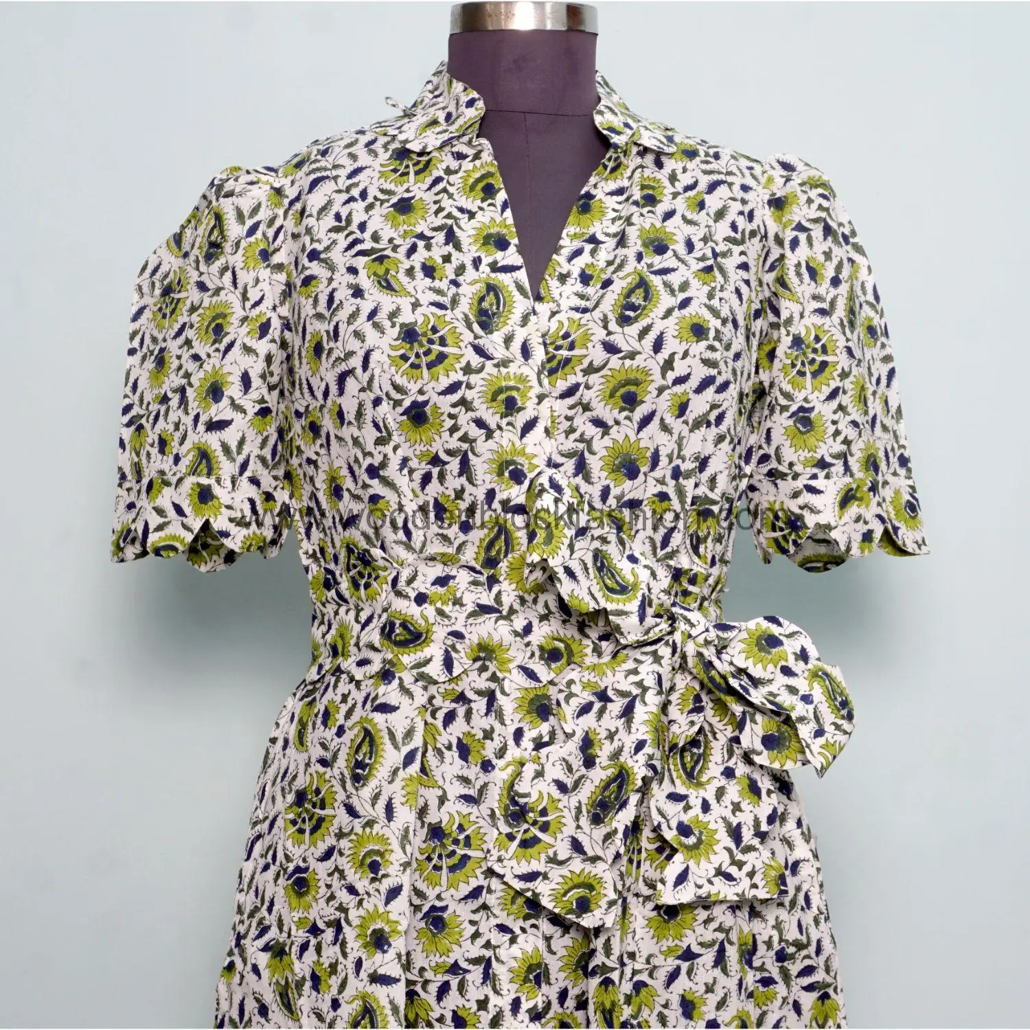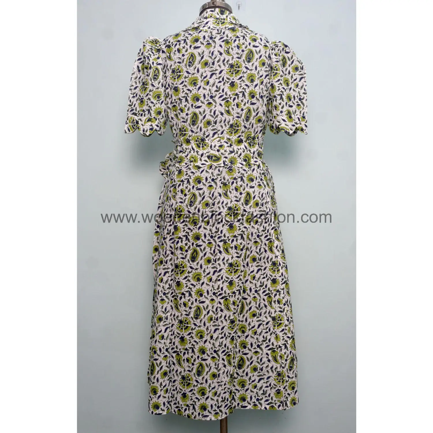 Timeless floral midi dress featuring pure cotton fabric, V-neck, and short sleeves.