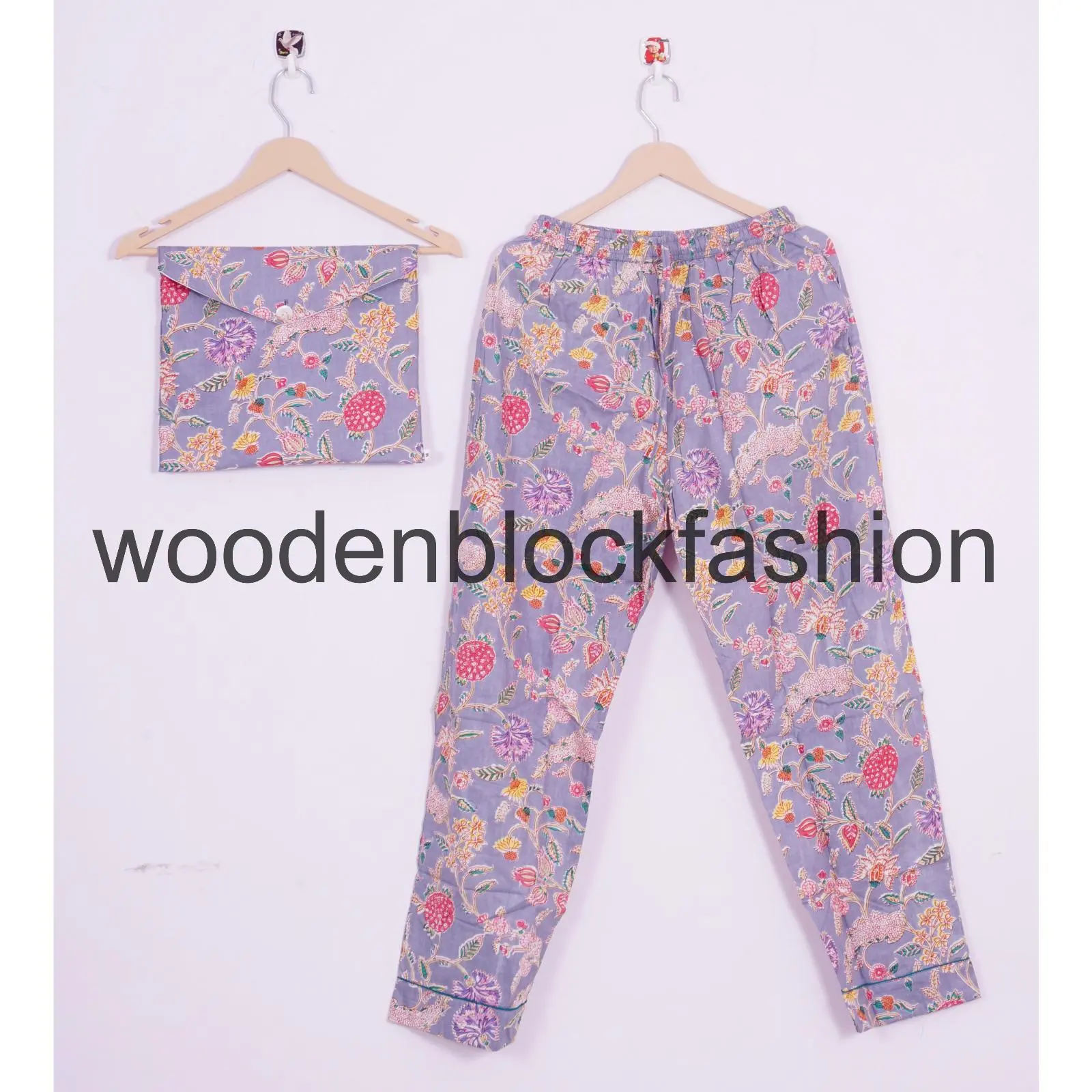 Our 100% cotton pajama suit is the perfect balance of style and comfort. Handmade with breathable fabric, it comes with matching trousers and a bag for extra practicality.
