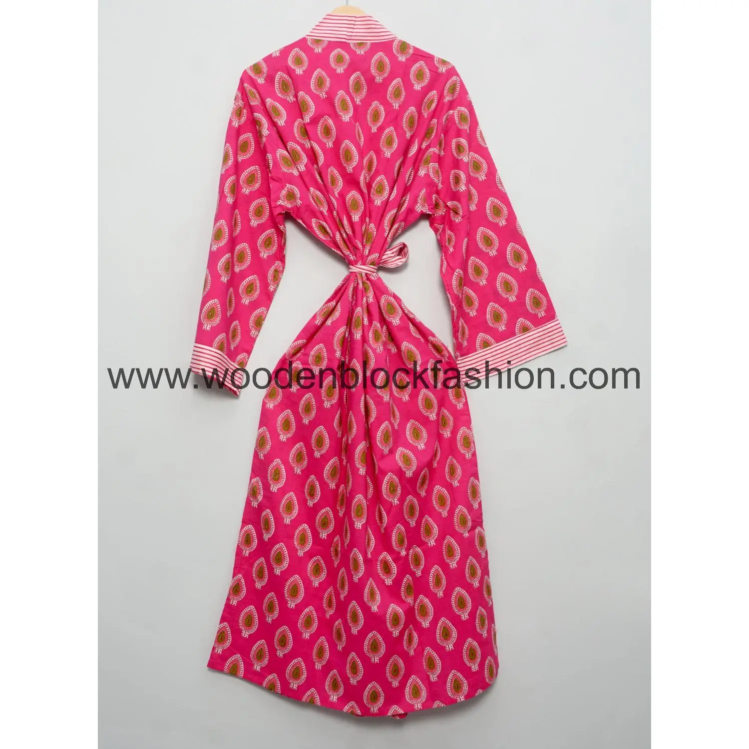 Designed with a relaxed fit, this cotton kimono robe offers comfort during pregnancy and beyond. The hand block print adds a traditional touch, making it perfect for lounging and gifting.