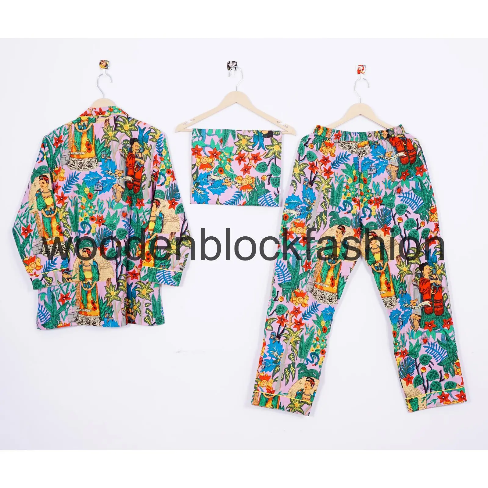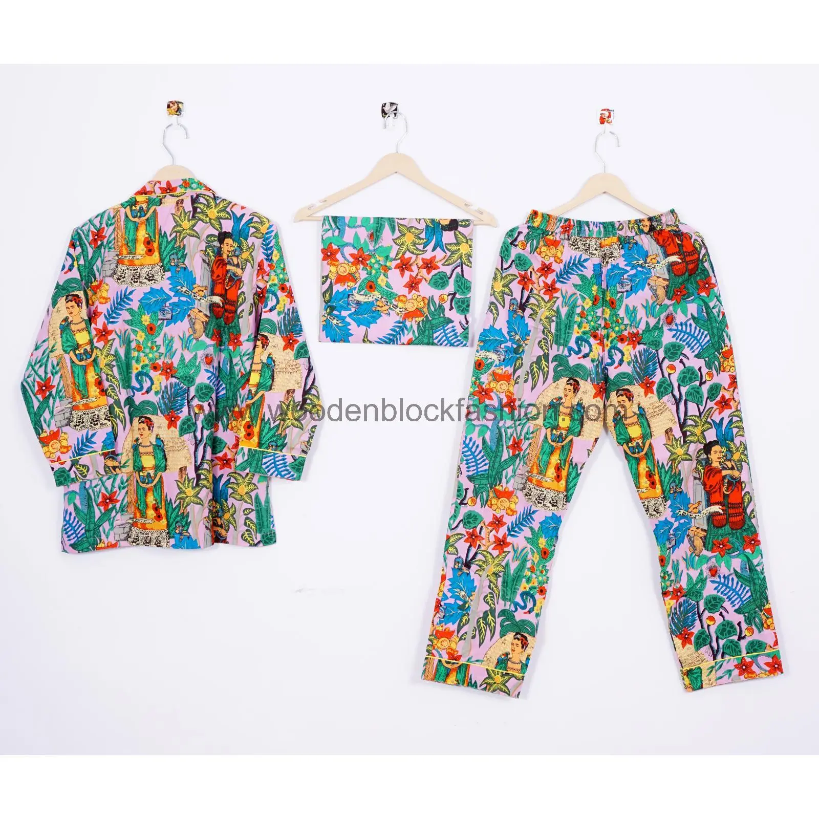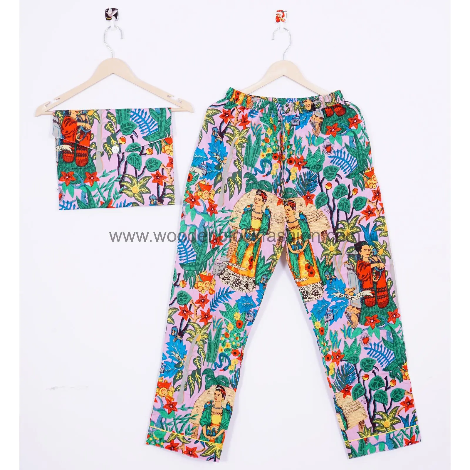 Frida Kahlo Print Cotton Pajama Set, Indian Lounge And Sleepwear