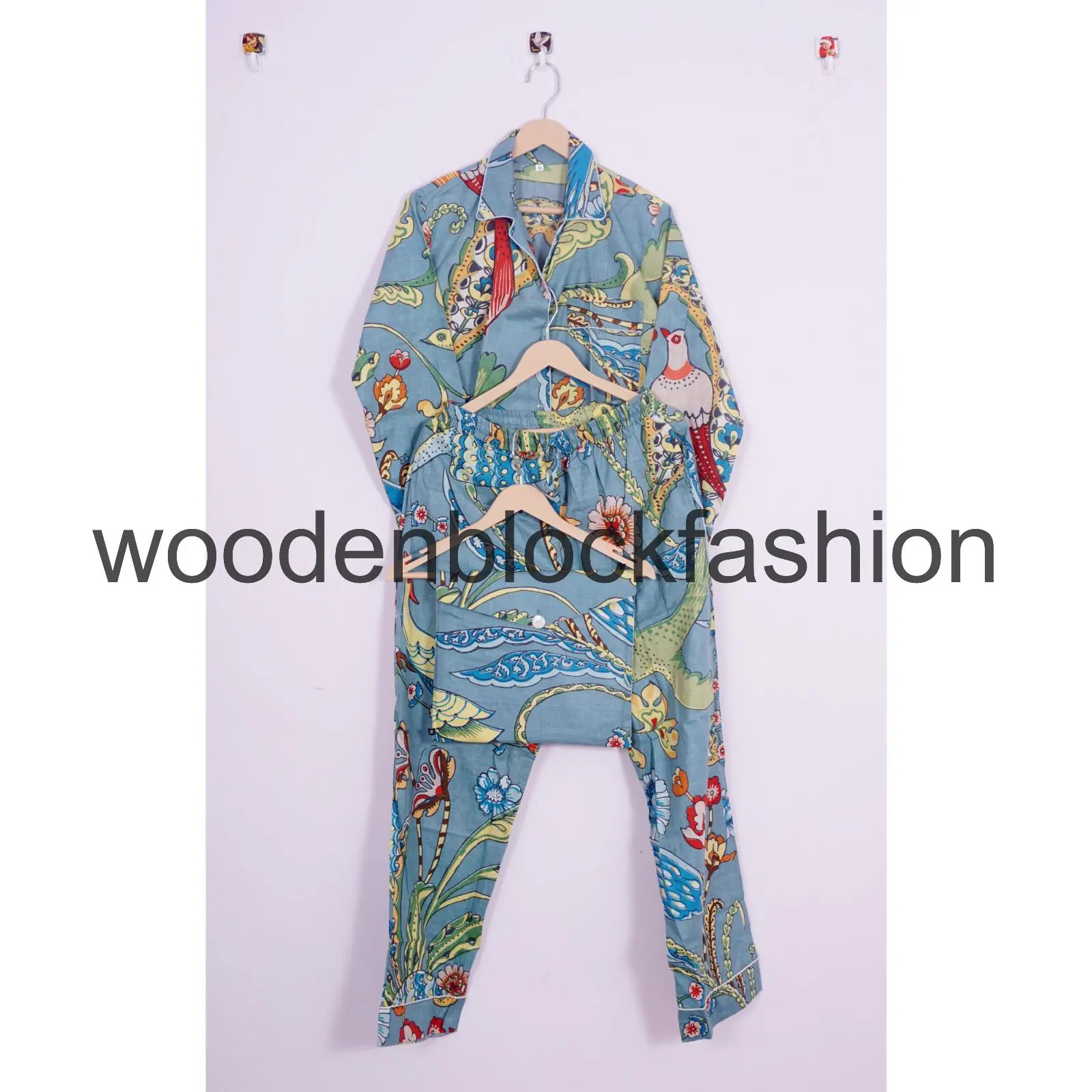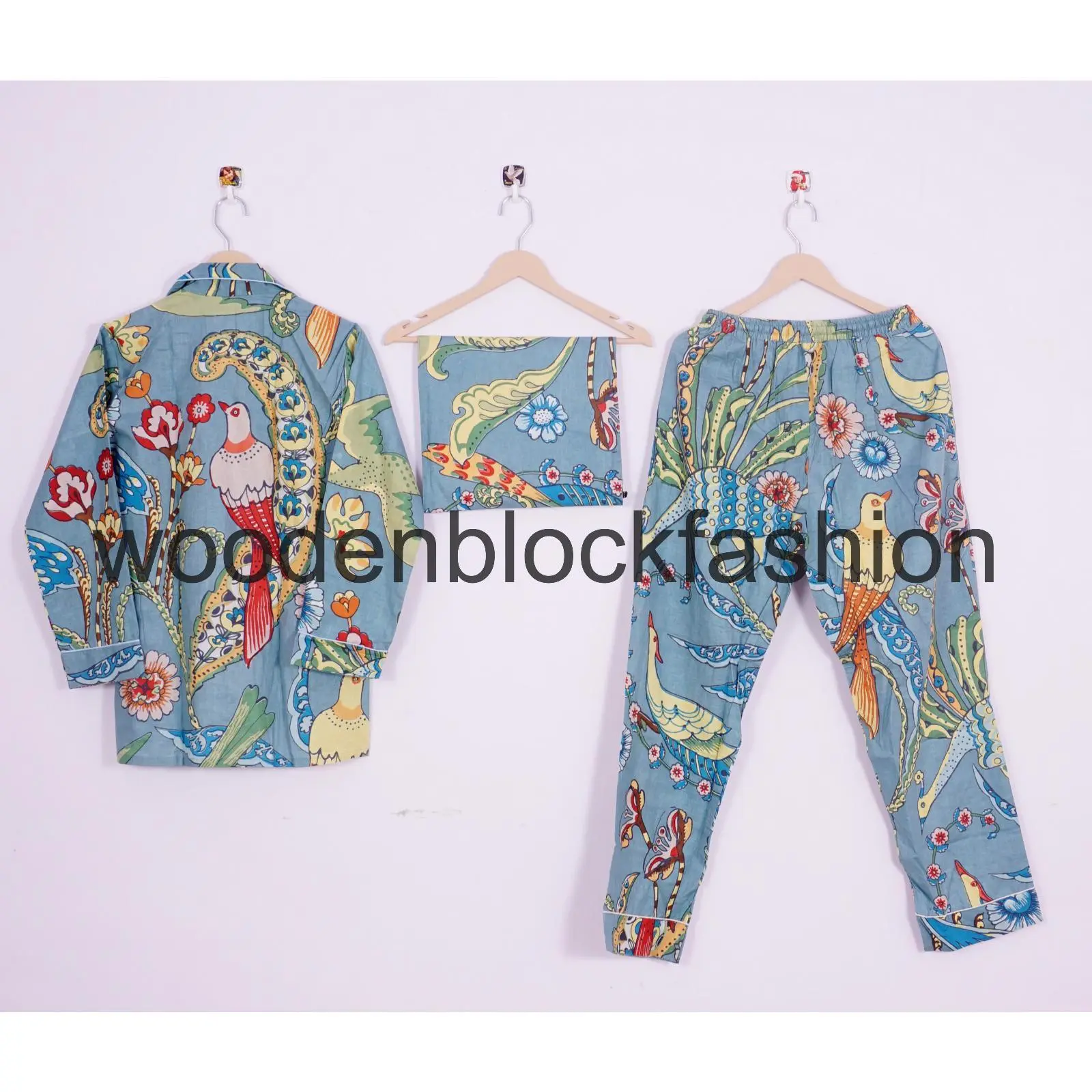 New Bird Printed Cotton Pajama Set, Indian Summer Night Suit