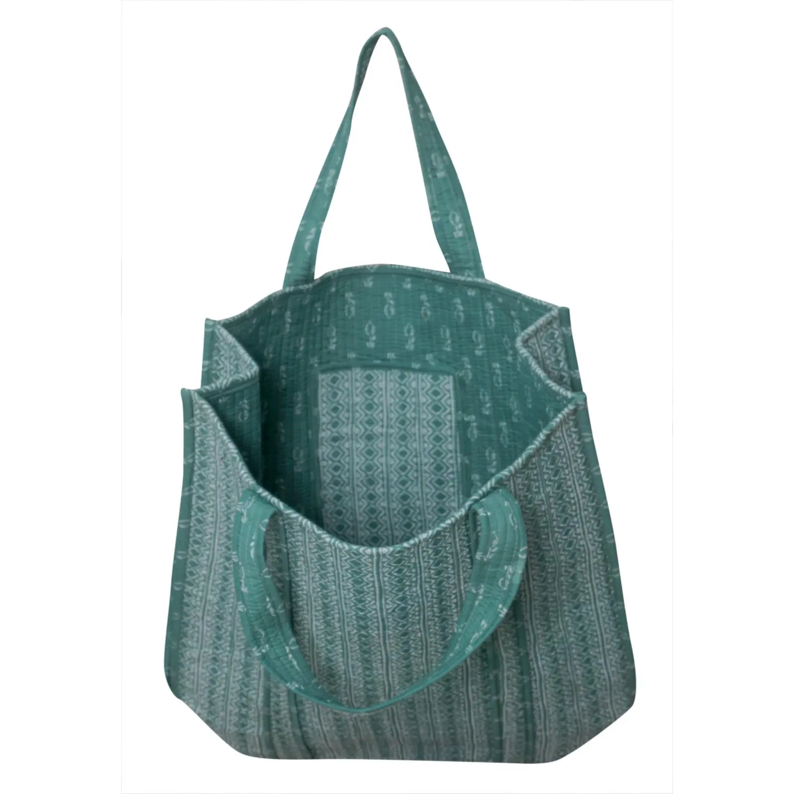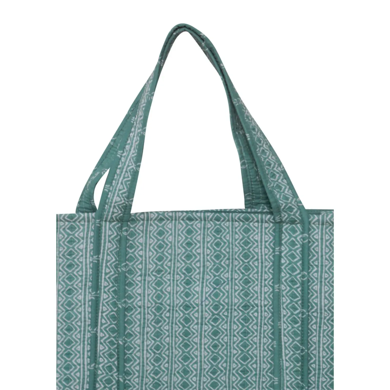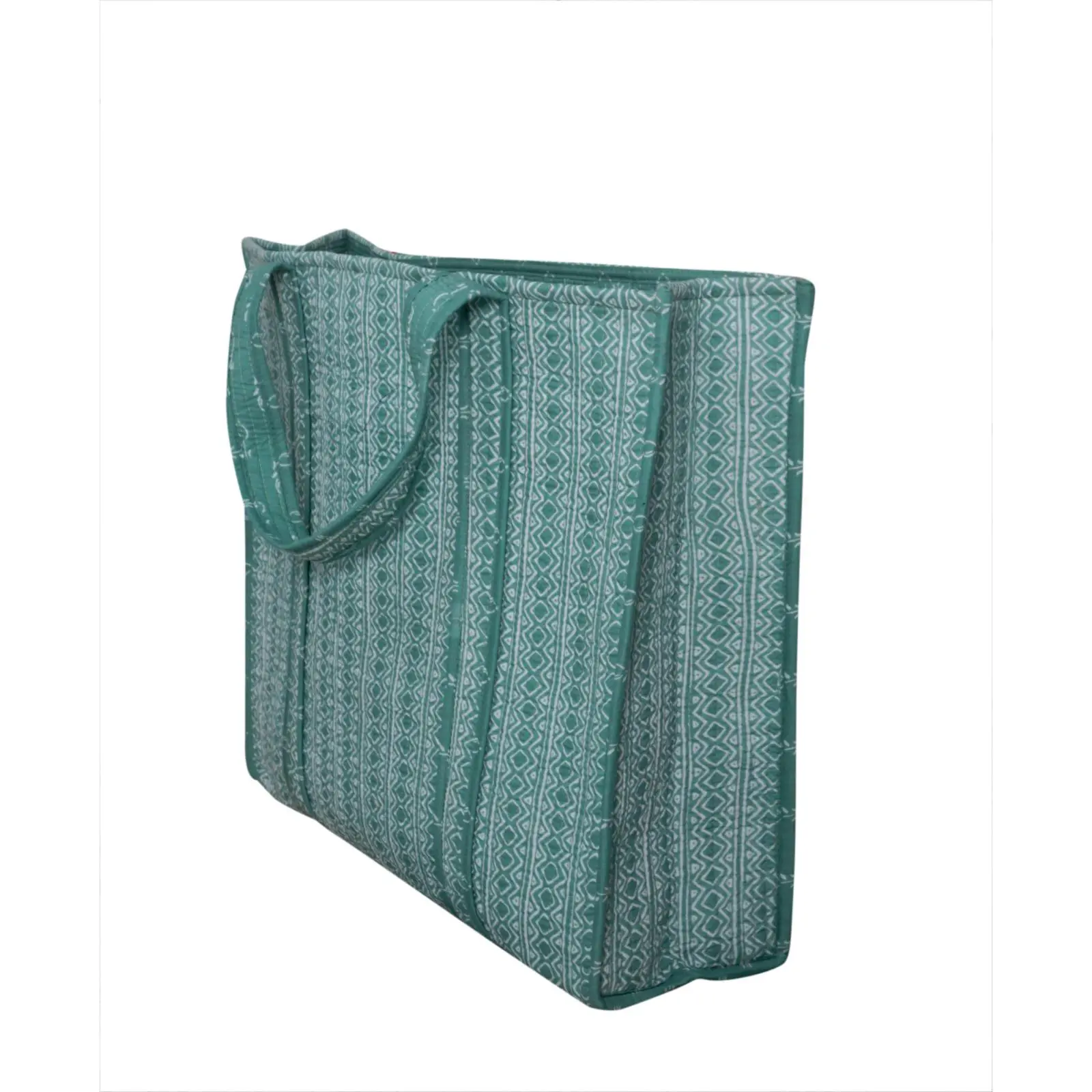 Designed with an elegant block print, this cotton tote bag is lightweight yet sturdy, making it ideal for shopping or carrying essentials.