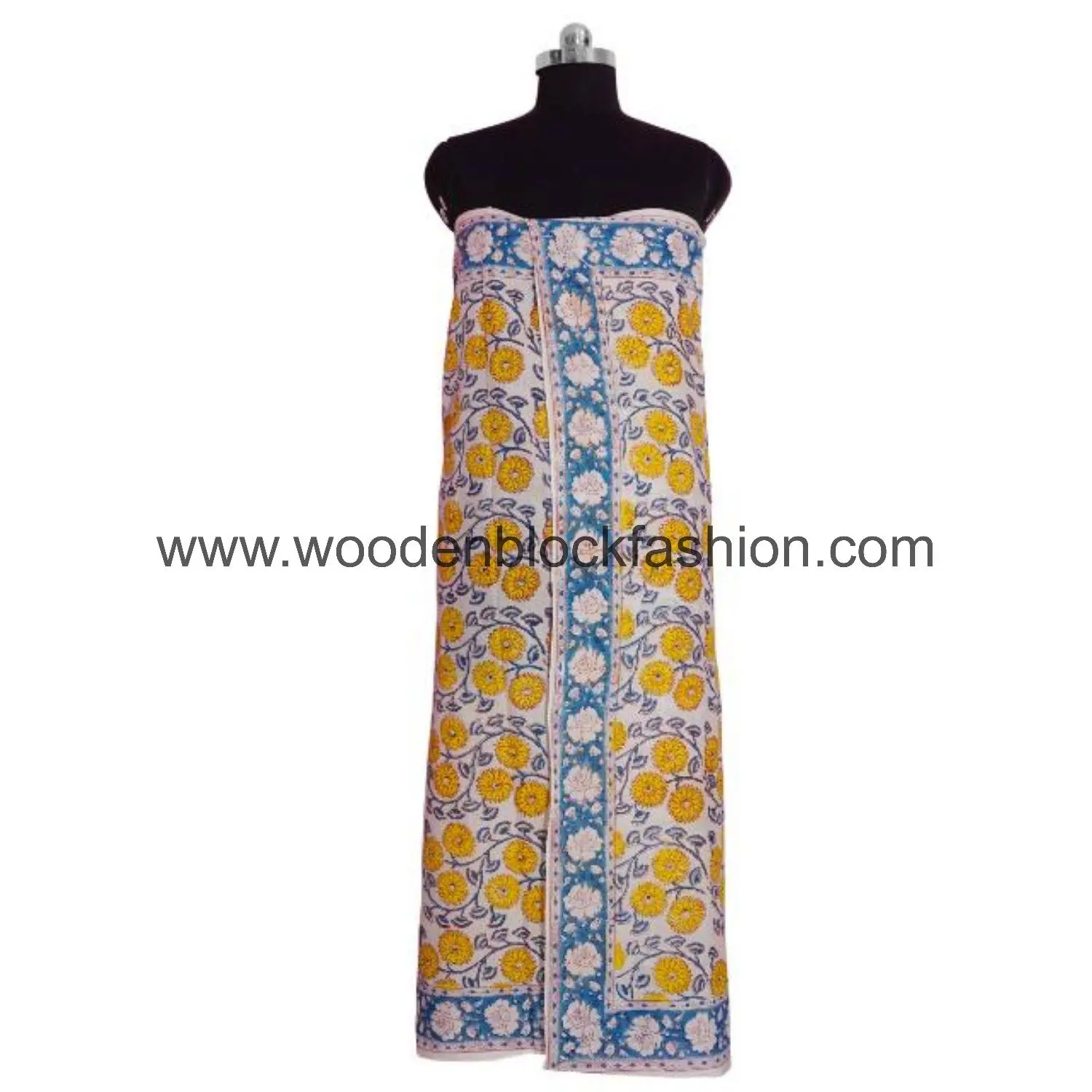 This elegant pareo is crafted from soft cotton and adorned with detailed floral hand block prints. Perfect for beach days, pool parties, or tropical vacations.