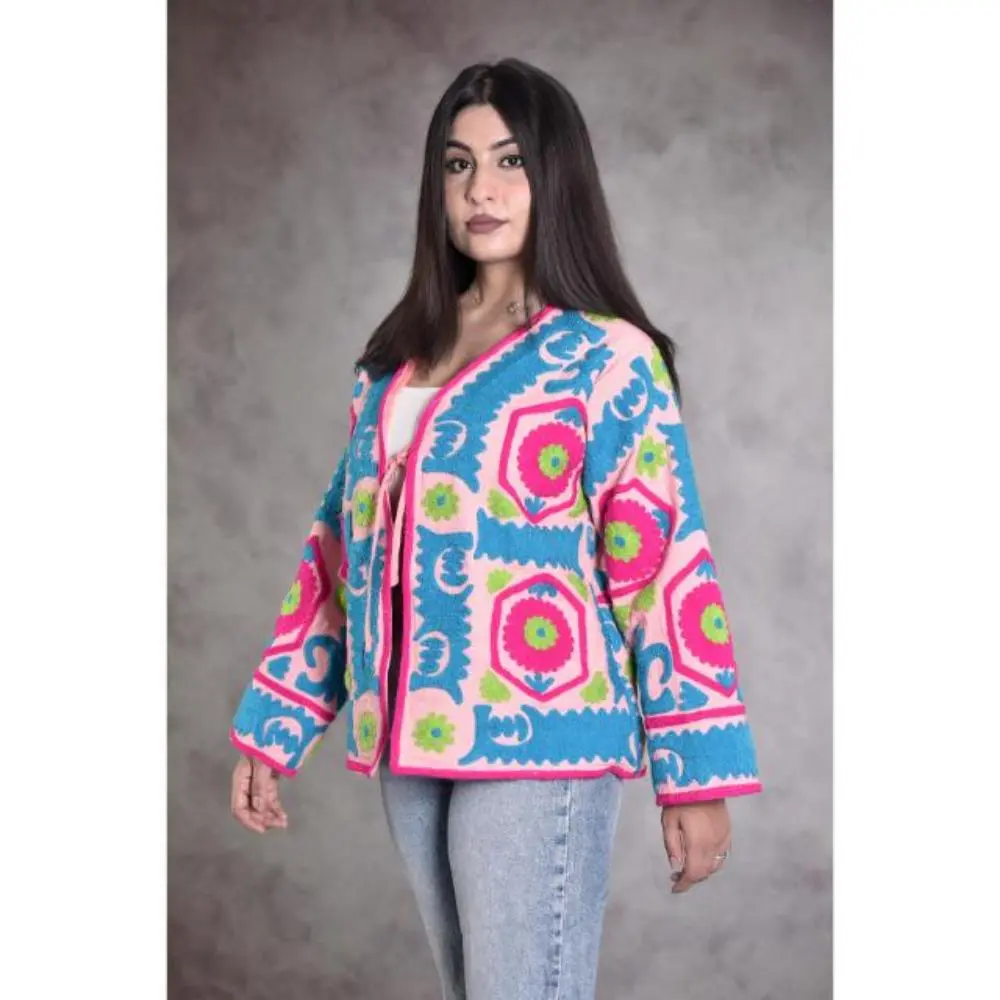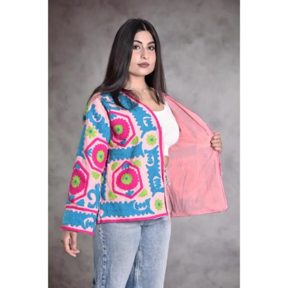 Duck Canvas Suzani Jacket, Handmade Short Jacket
