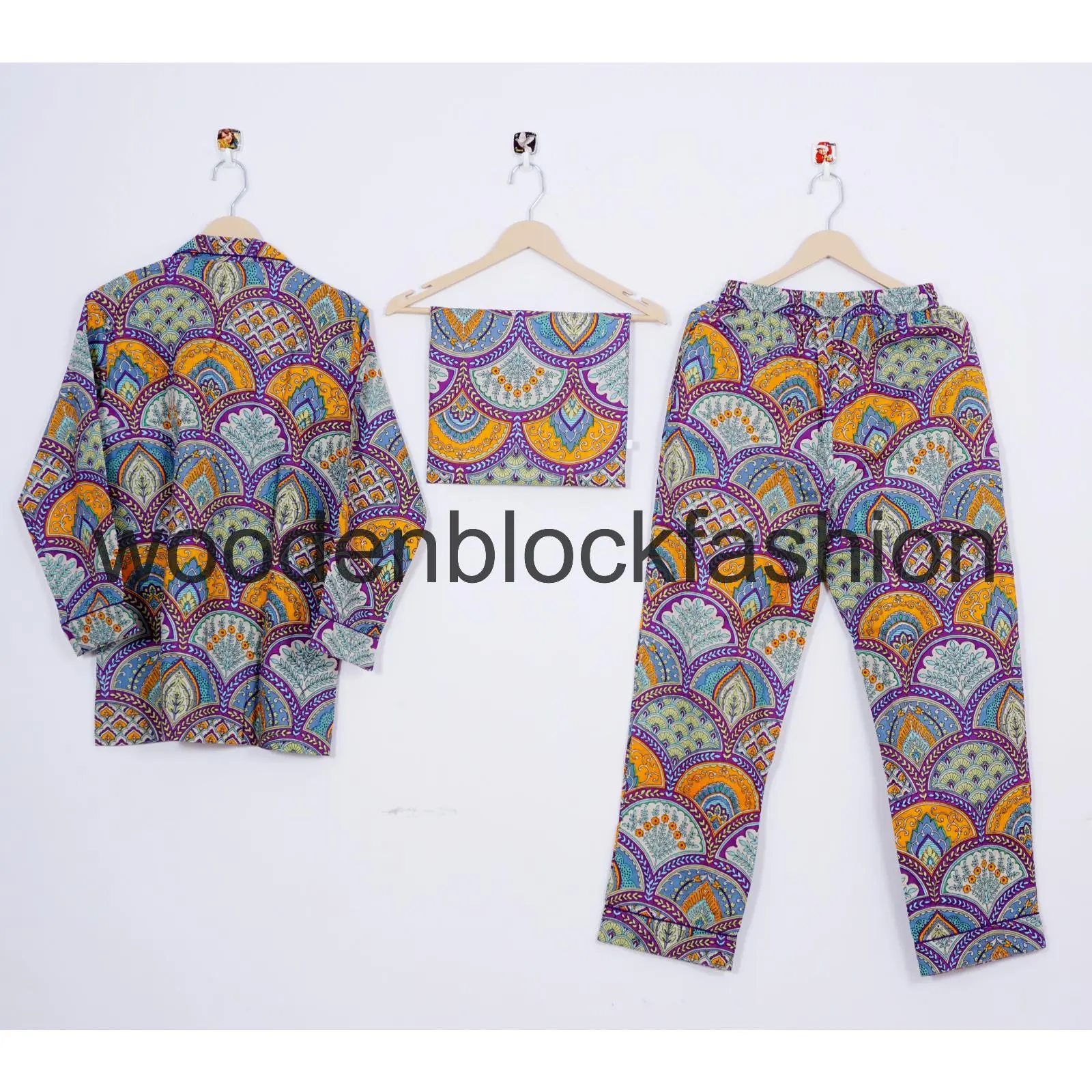 Designed for daily comfort, this hand block cotton pajama set offers durability, breathability, and timeless style.