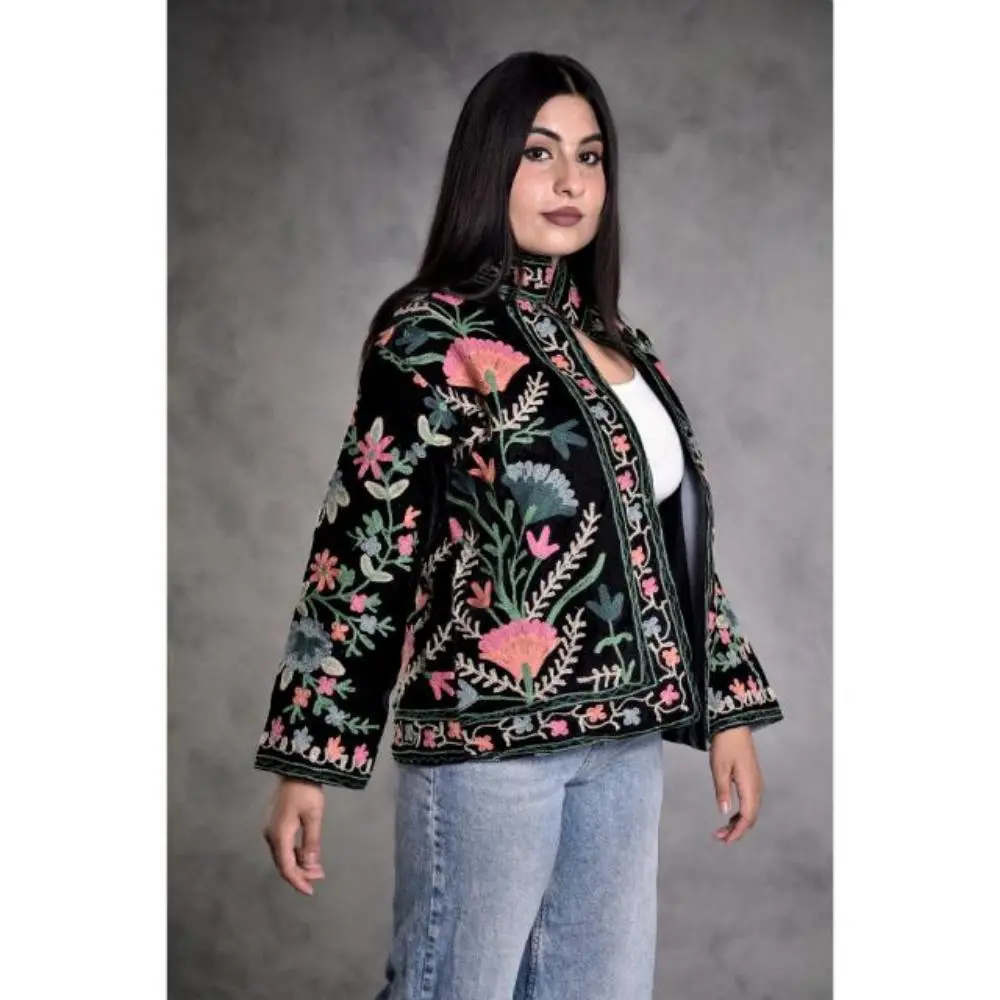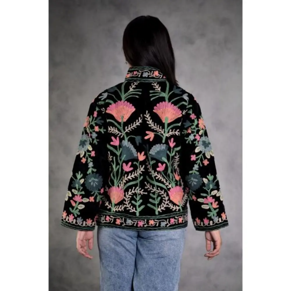 Velvet Suzani Hand Embroidered Women's Wear Short Jacket
