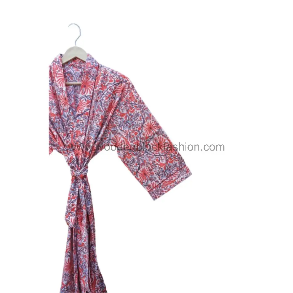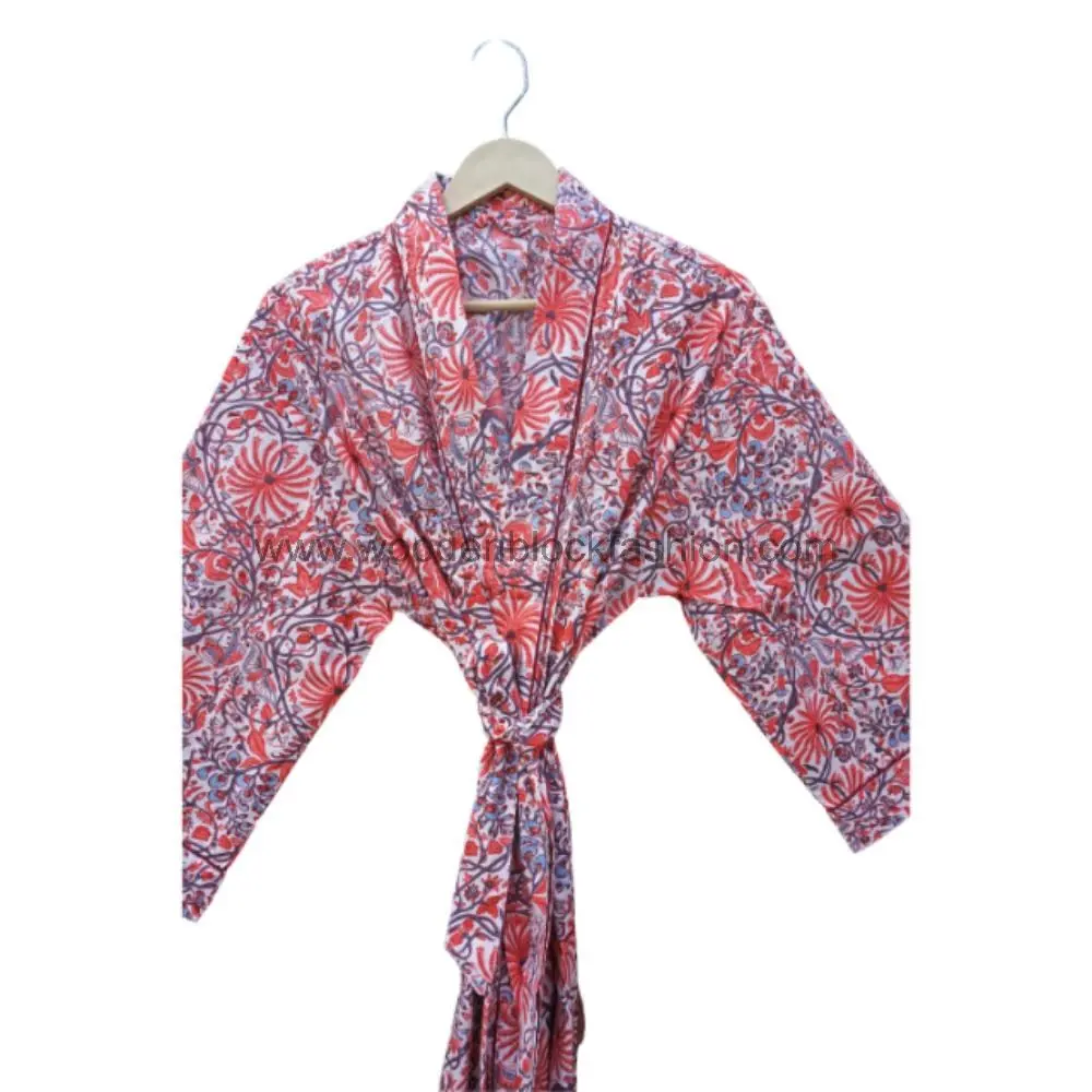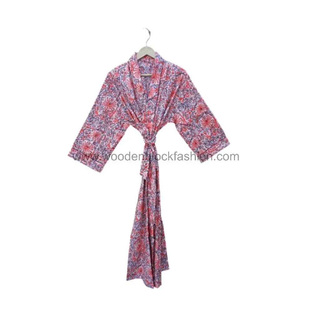 This beautiful long kimono bathrobe is handcrafted from 100% cotton and features a traditional floral hand block print, perfect for comfortable and stylish lounging.