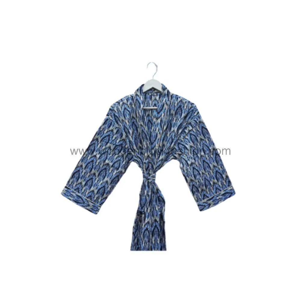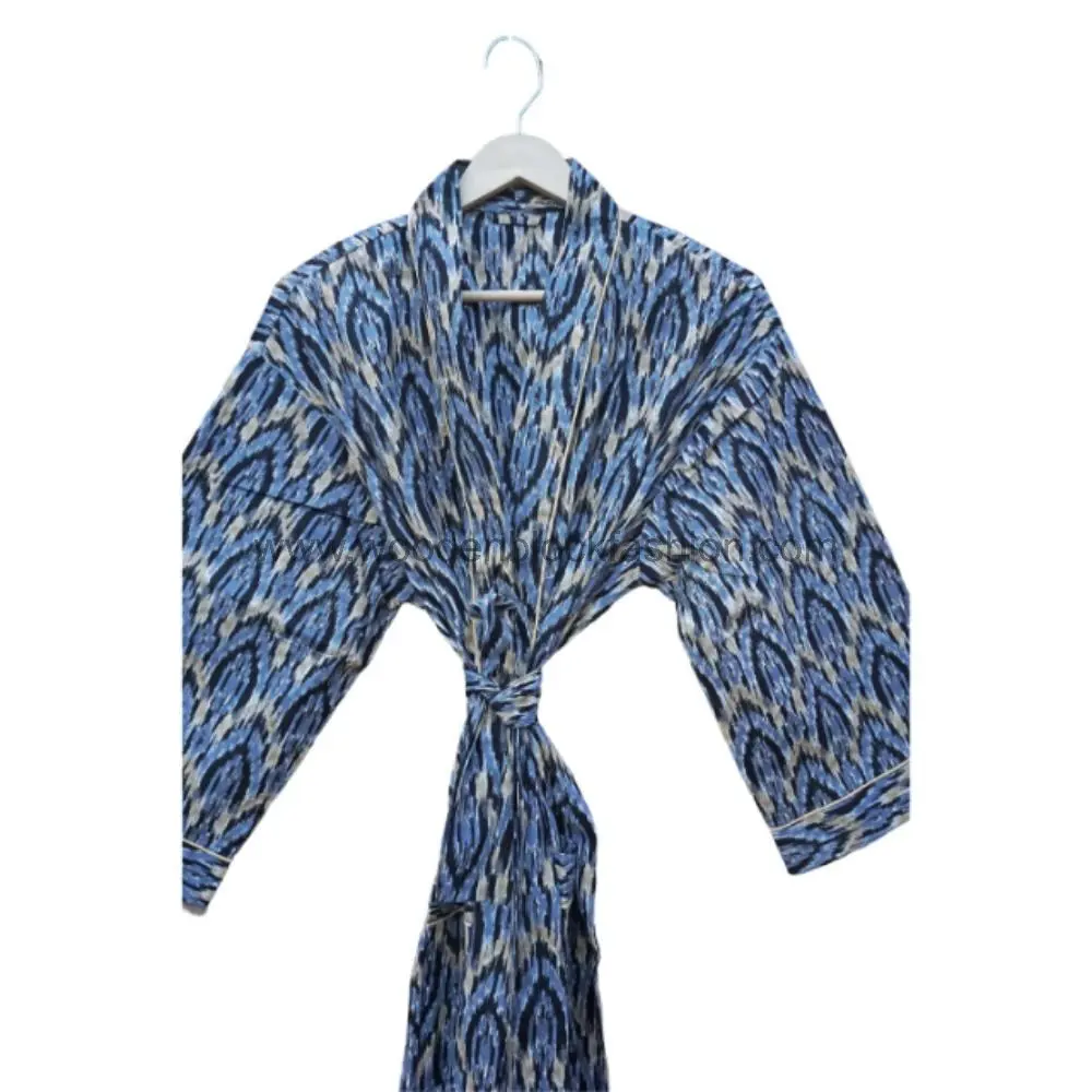 Block Printed Cotton Kimono Bathrobe, Women’s Lounge & Night Robe
