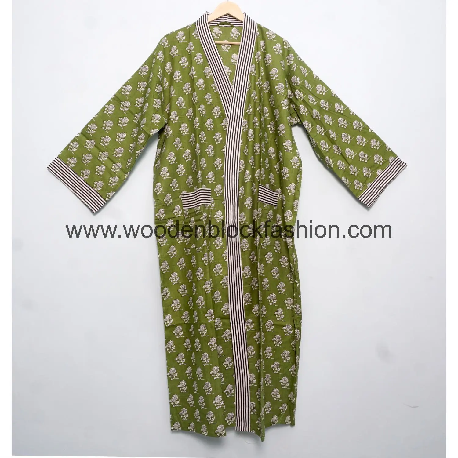 Featuring floral Indian block prints, this cotton kimono offers breathable comfort and timeless style. Perfect for spring mornings, casual wear, and relaxing evenings.