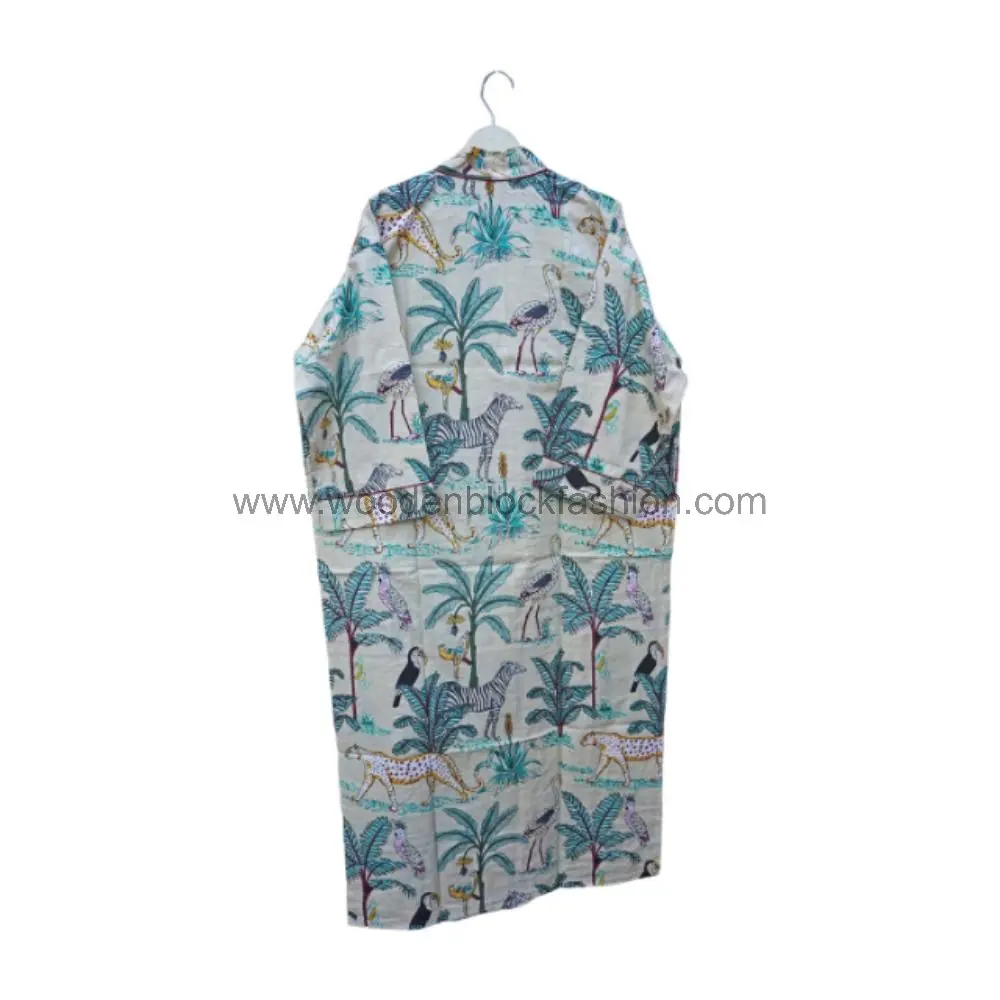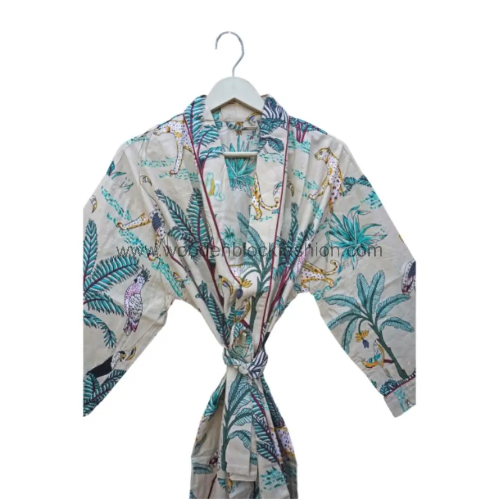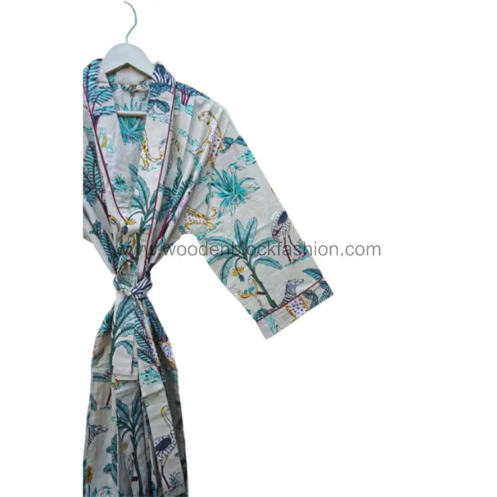 Boho handblock print kimono robe designed for travel and holiday wear. The lightweight cotton keeps you cool and stylish wherever you go.
