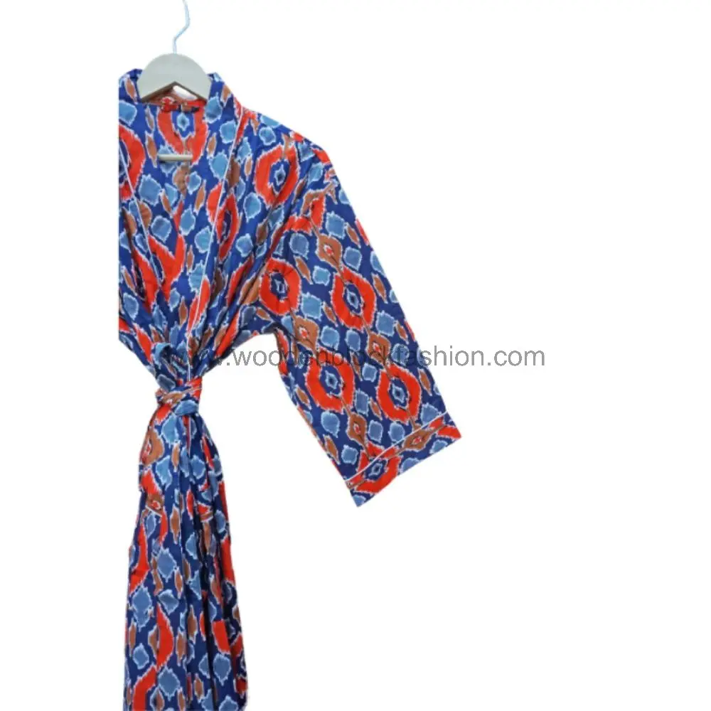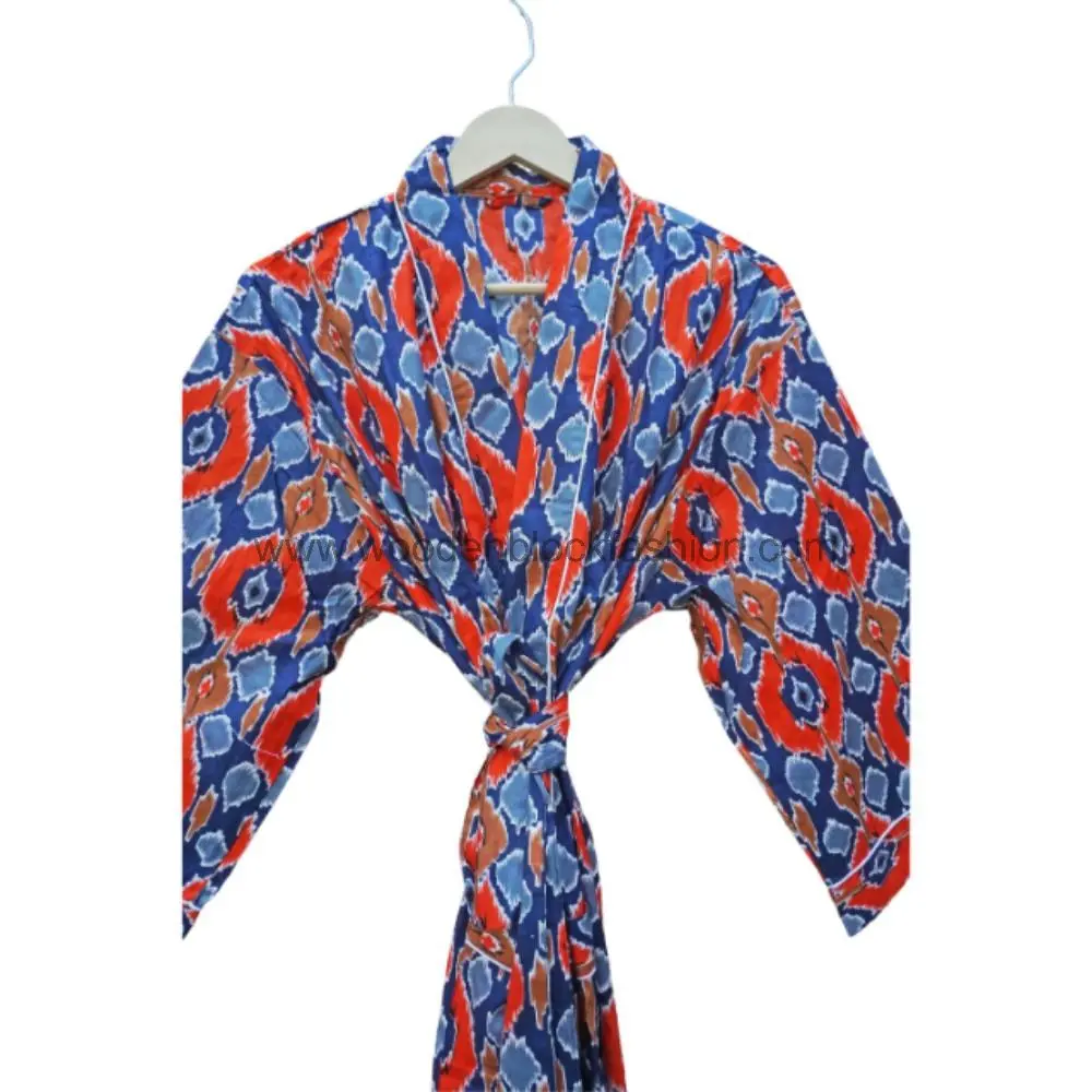 Women’s Long Floral Cotton Kimono Robe Hand Block Print