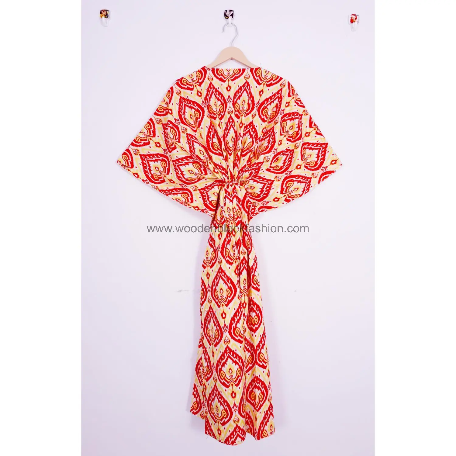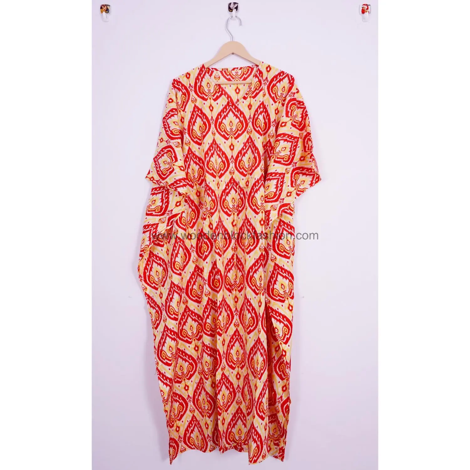 Designed in a free-size fit, this Indian cotton kaftan dress offers universal comfort.