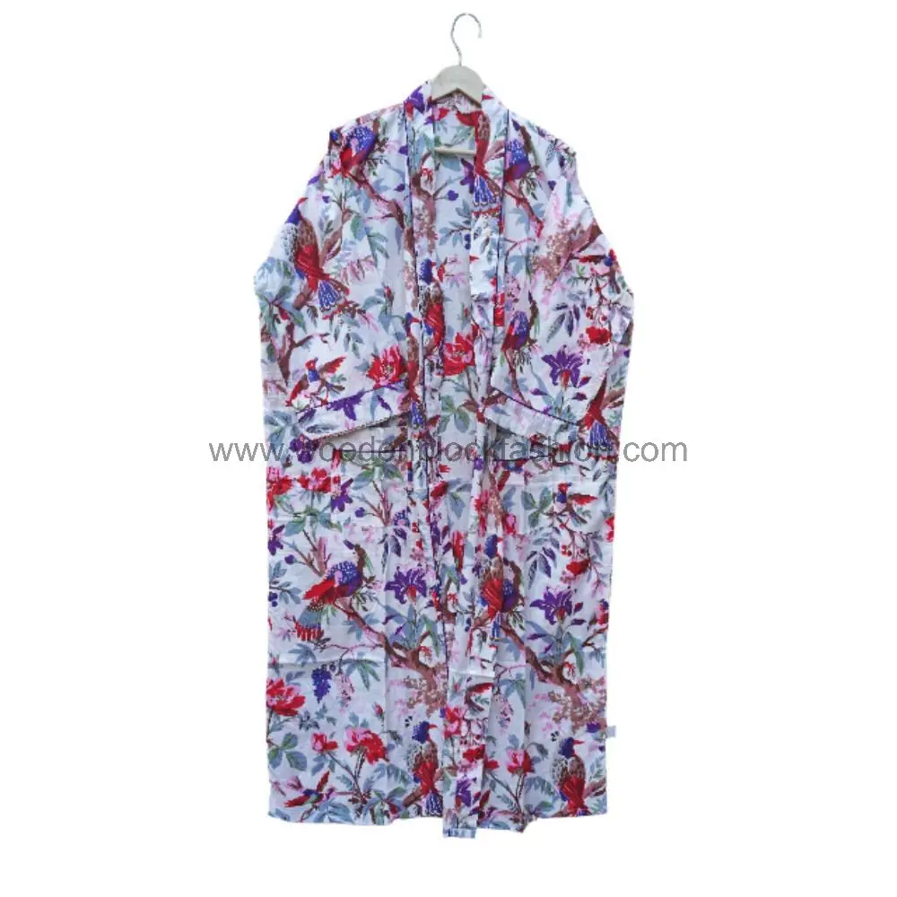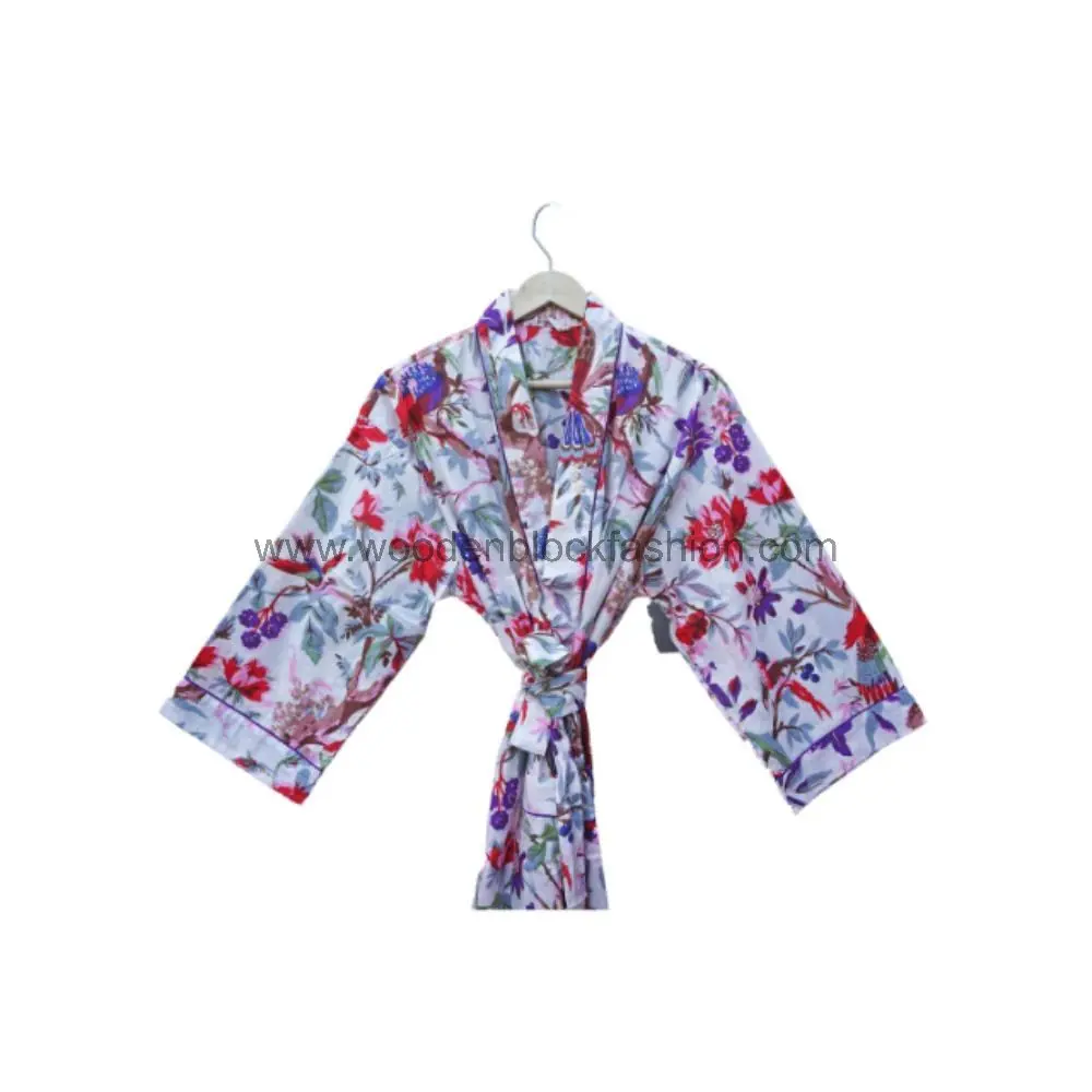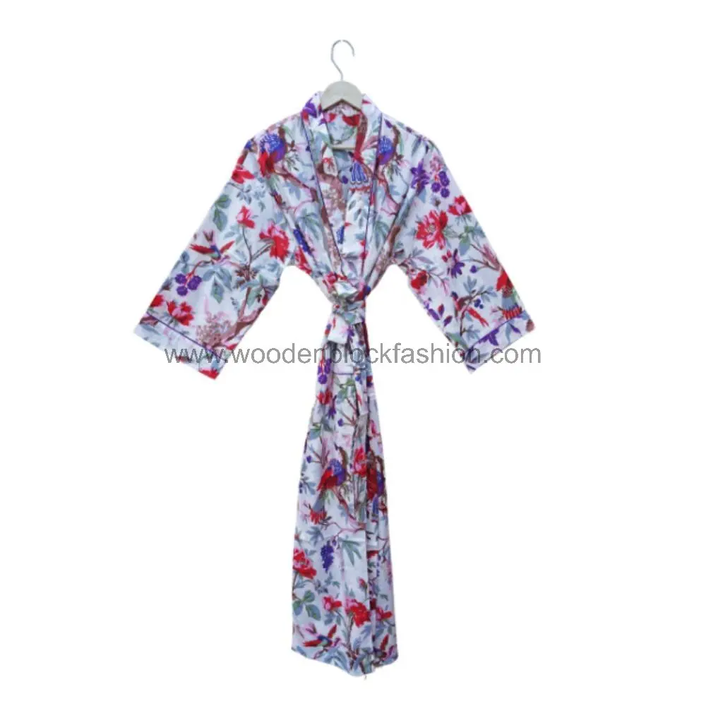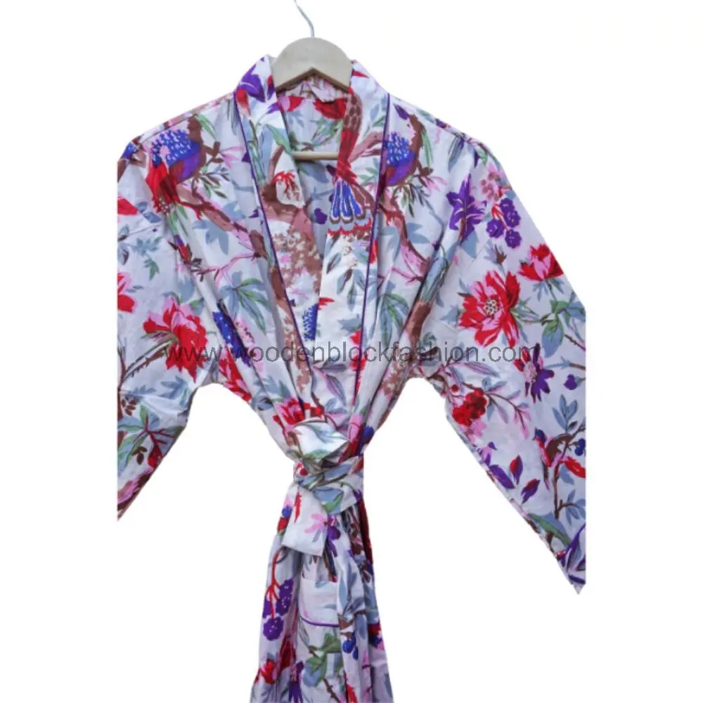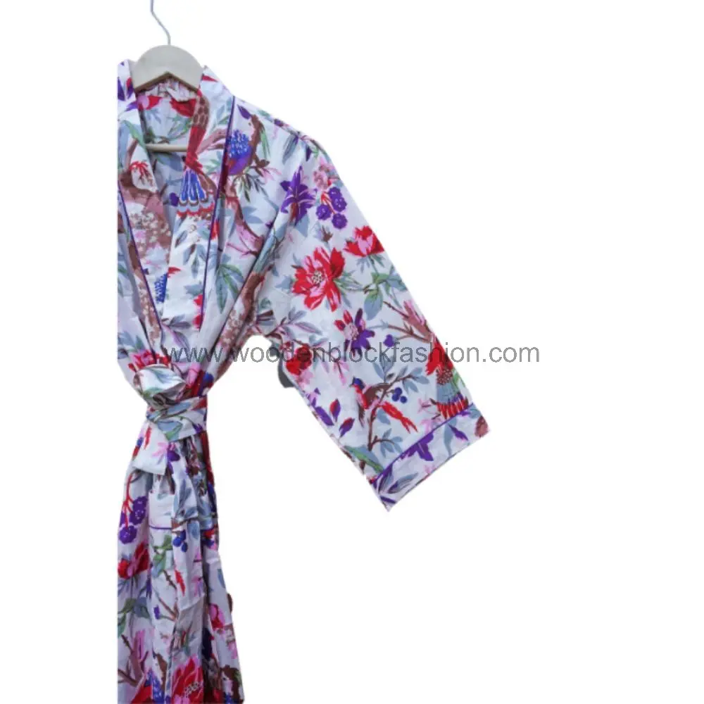 Lightweight Cotton Kimono Bathrobe – Floral Block Print
