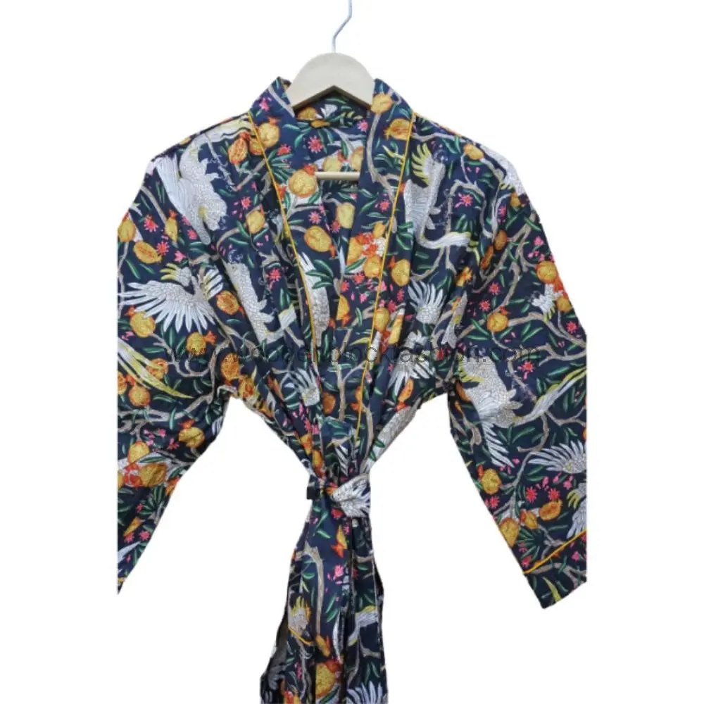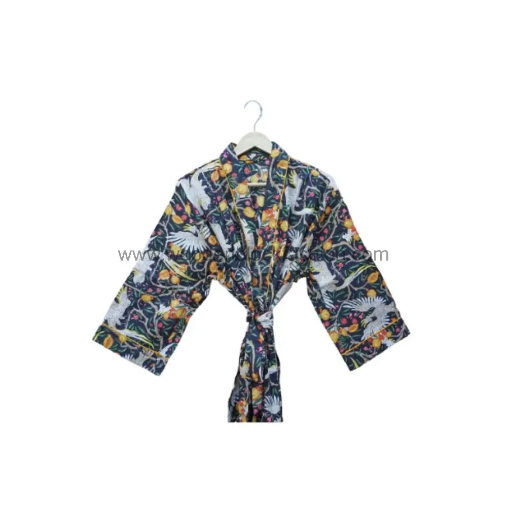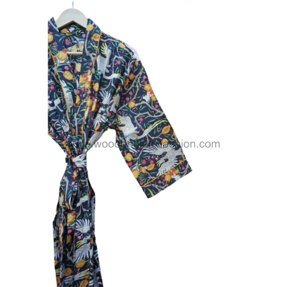 Handmade Floral Block Print Cotton Dressing Gown Cotton Kimono