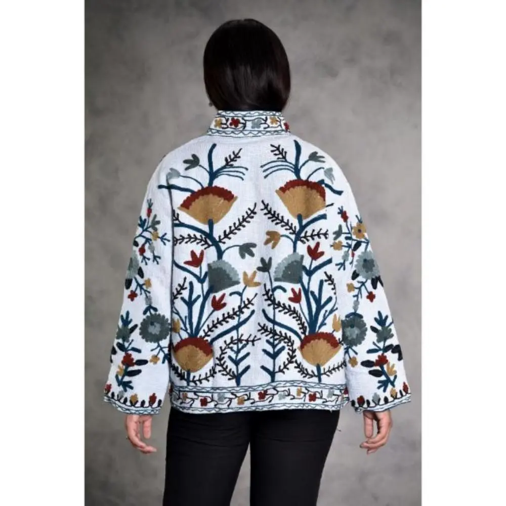 Designed with intricate hand embroidery, this Suzani jacket brings timeless craftsmanship to contemporary fashion.