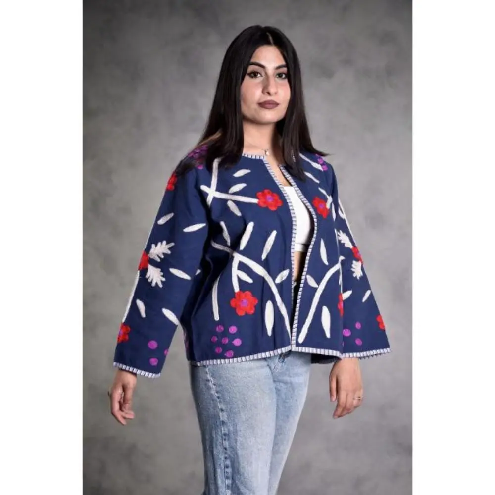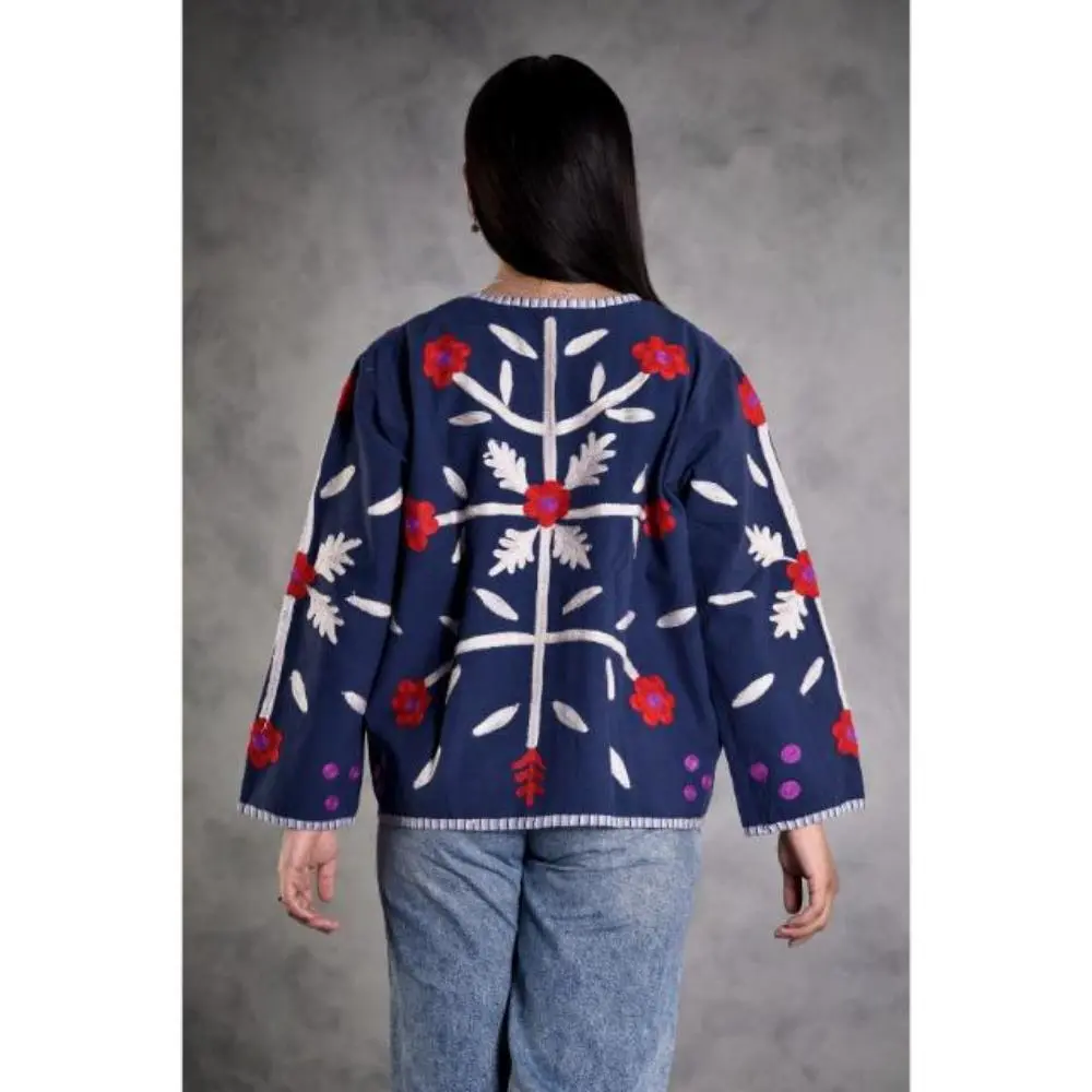 Winter Cotton Suzani Coat, Boho Embroidered Short Jacket