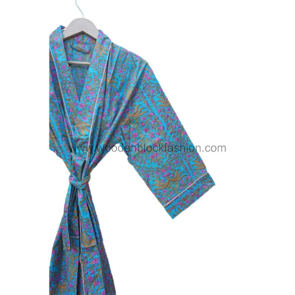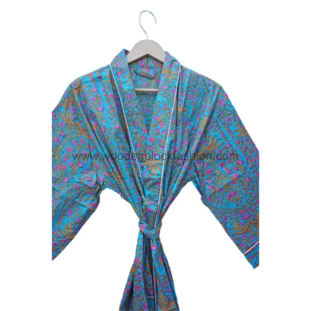 An Indian-inspired kimono dress made from breathable cotton. The floral pattern adds a delicate touch, making it perfect for casual outings or relaxing at home.