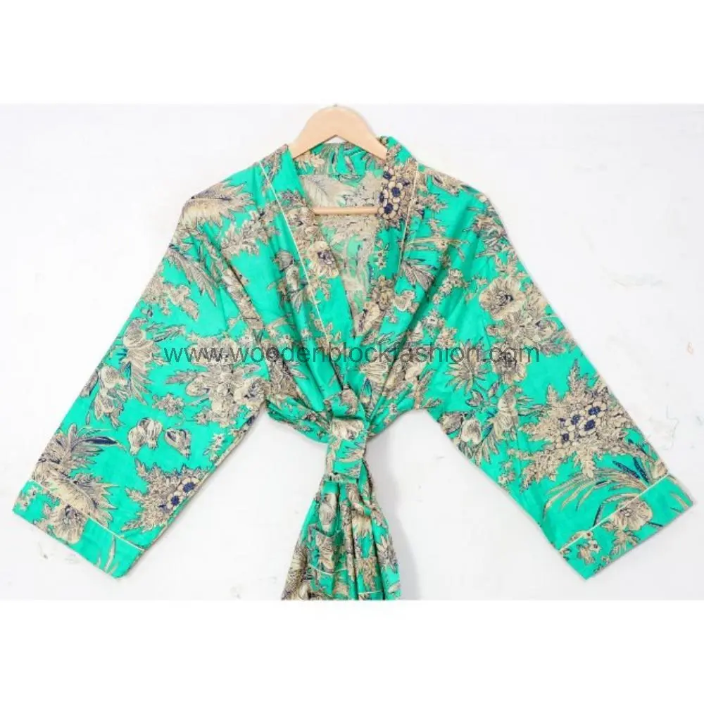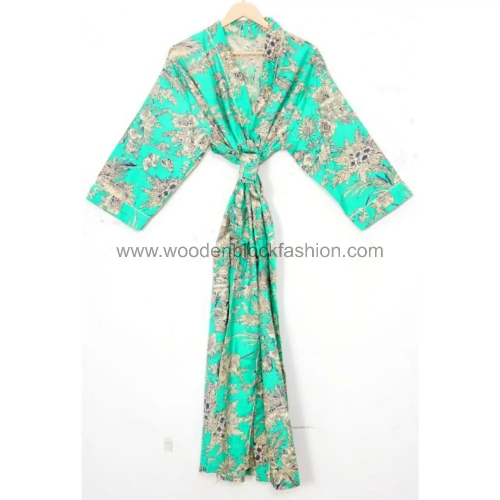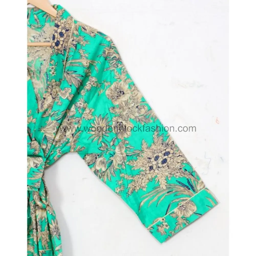 Hand Block Print Kimono Robe – Cotton Bridal Dressing Gown
