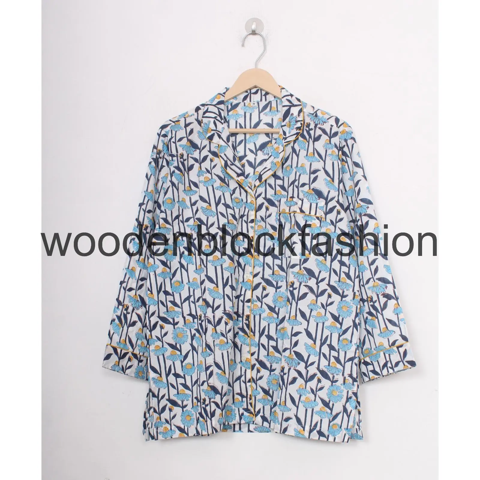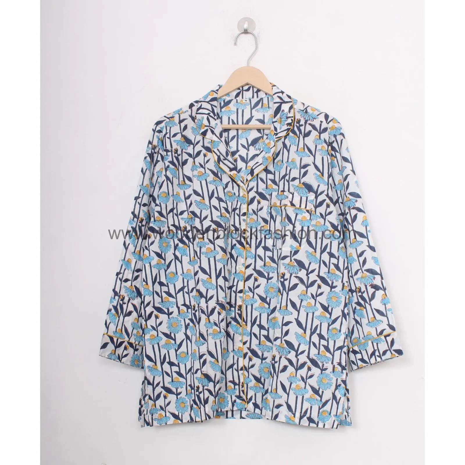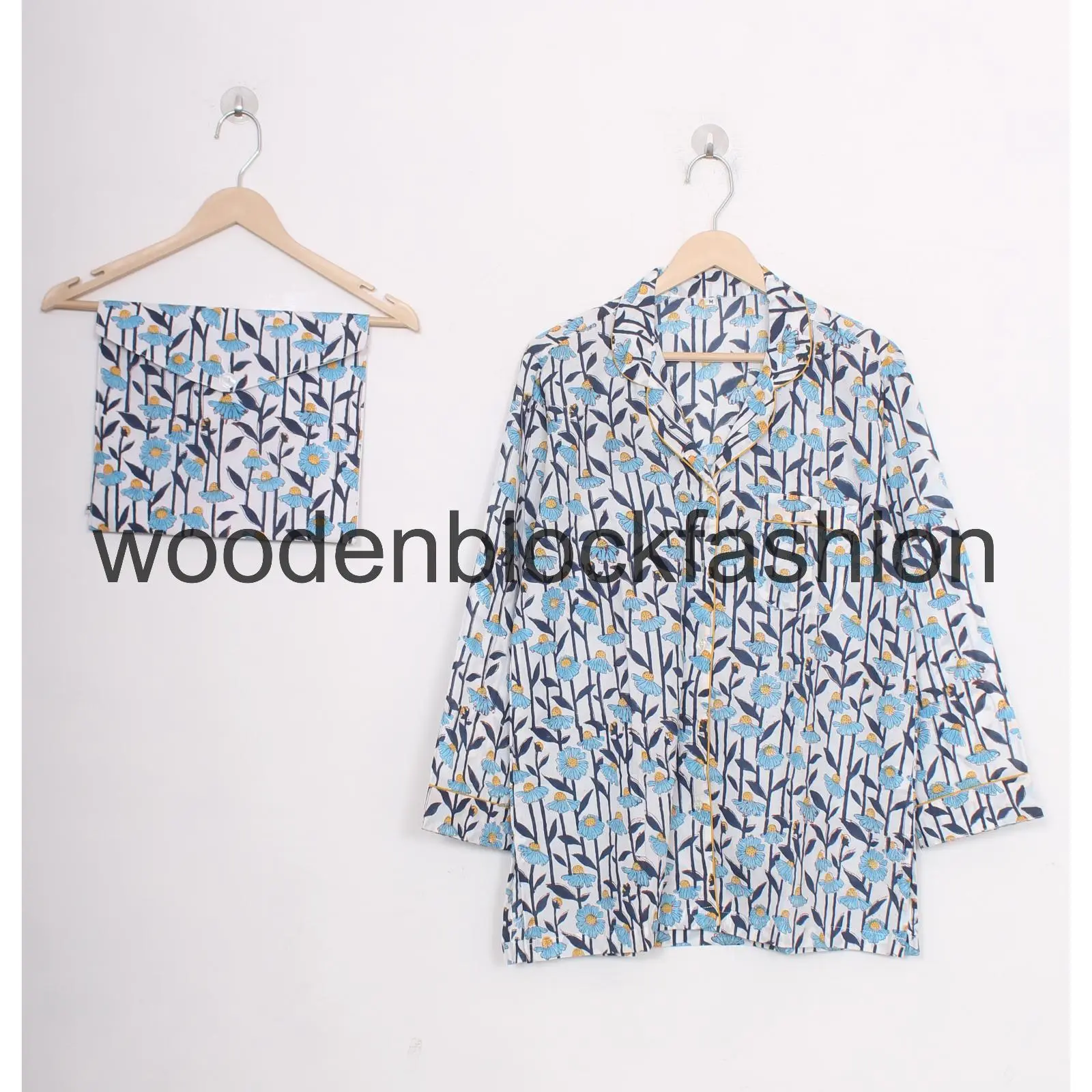 Relax in style with this breathable cotton loungewear set featuring handcrafted block prints.