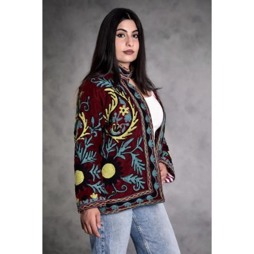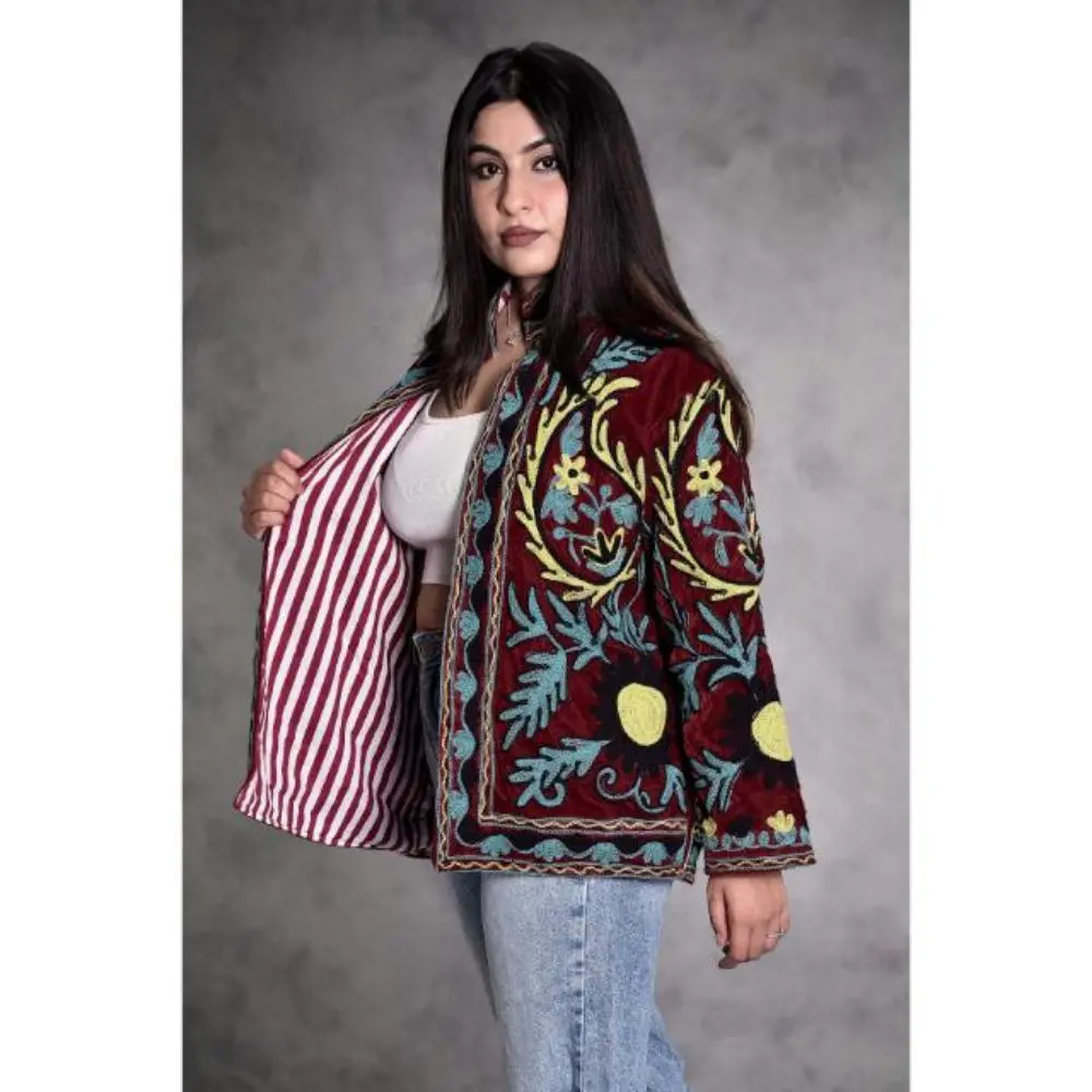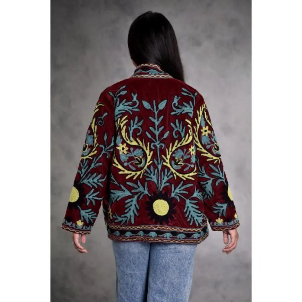Velvet Suzani Hand Embroidered Short Jacket | Autumn Winter