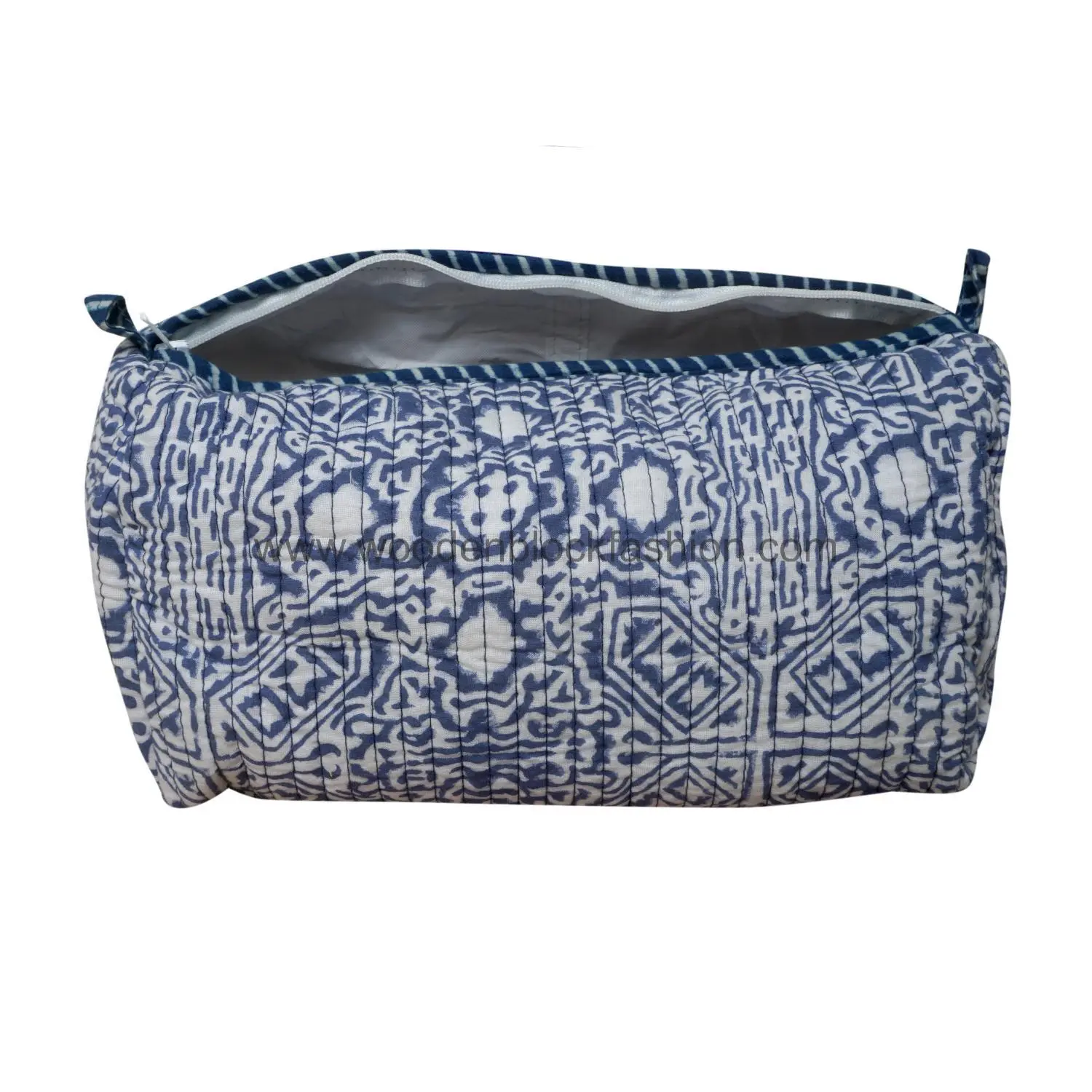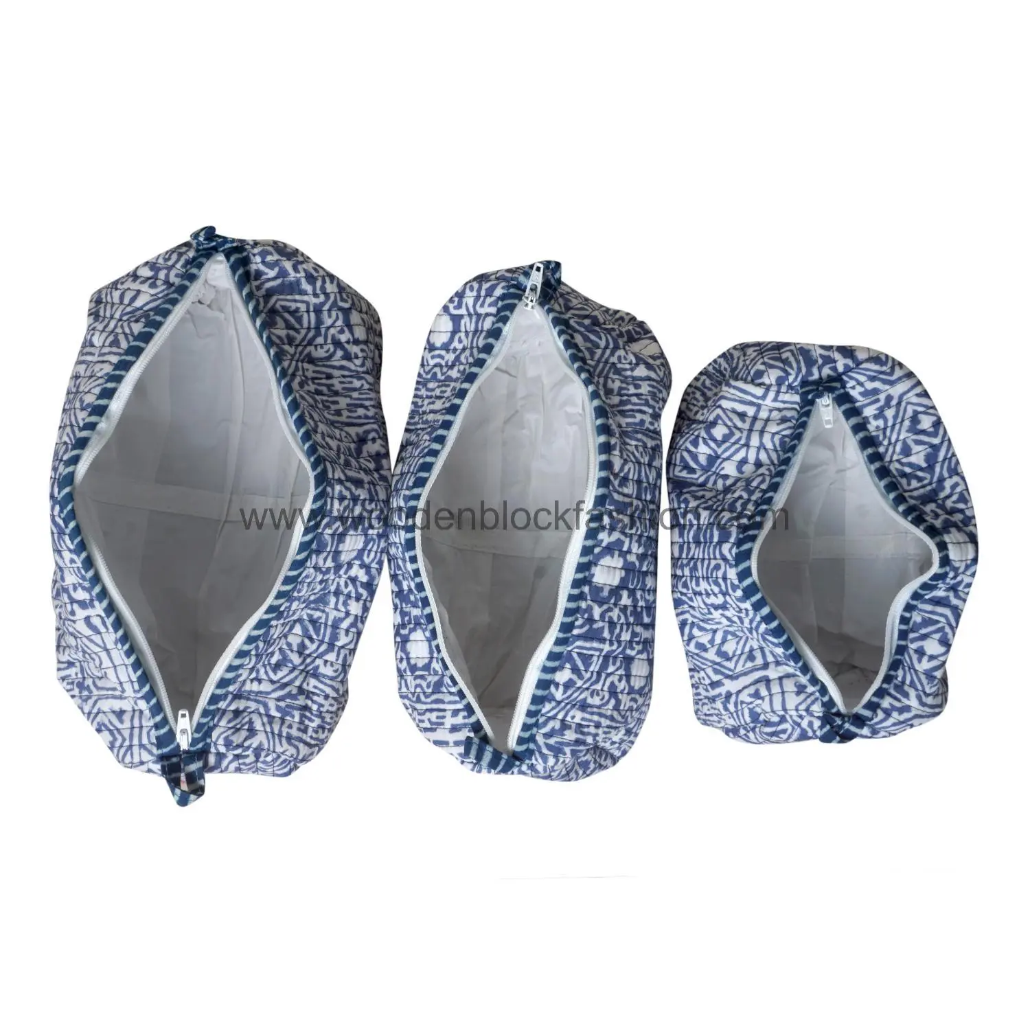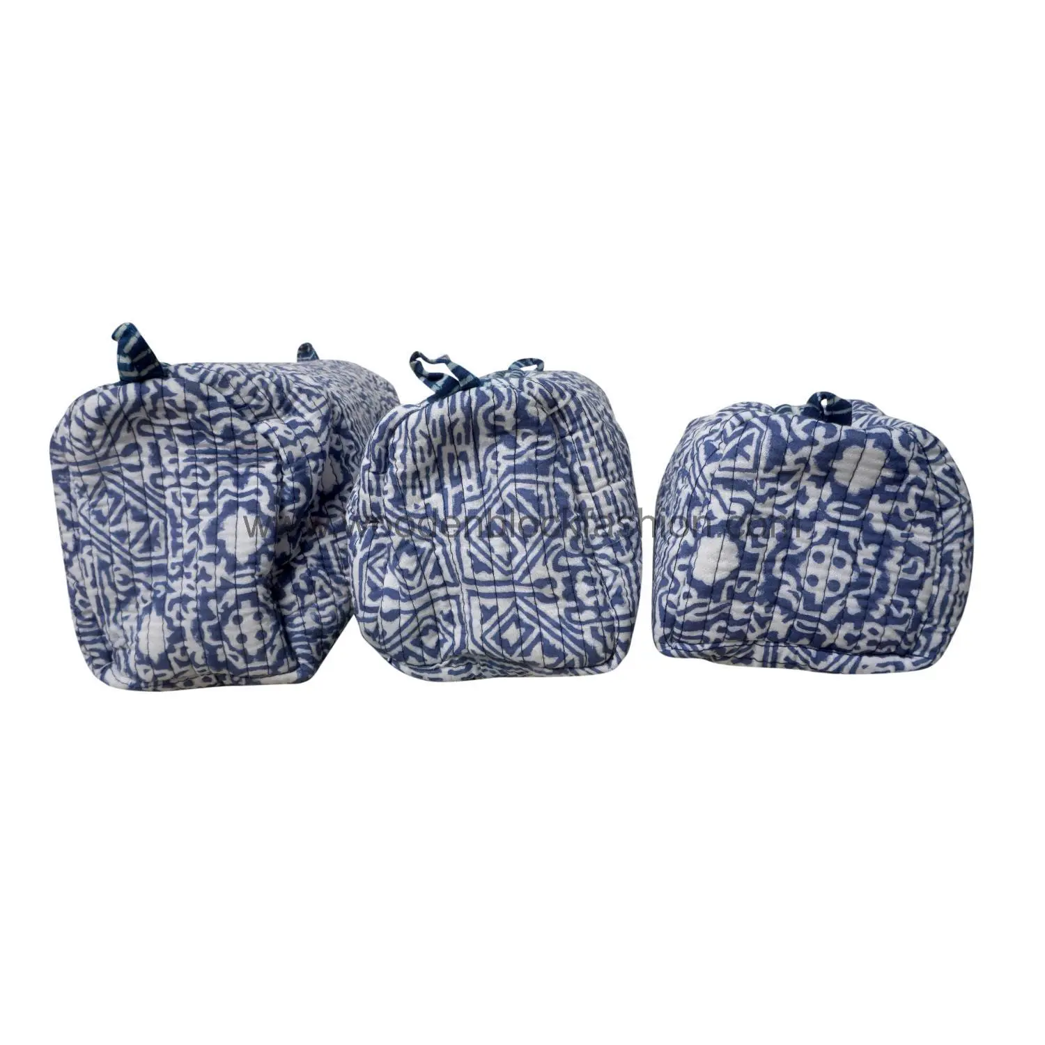 This block printed quilted waterproof cosmetic bag set offers both elegance and practicality. Designed for makeup, skincare, and toiletry storage.