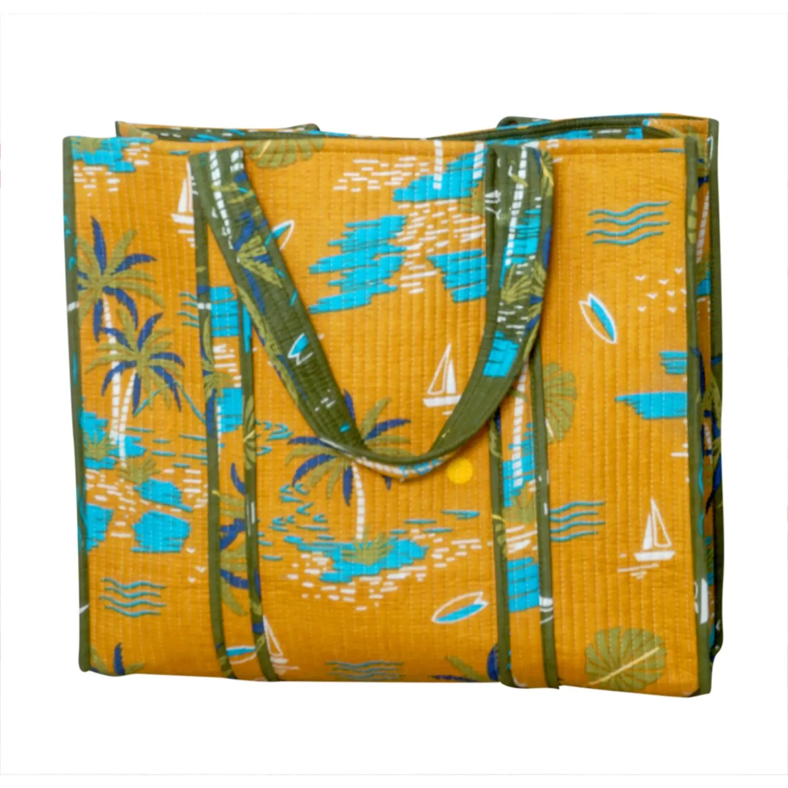 Add a pop of color to your wardrobe with this elegant Block Print Cotton Tote. Its hand-crafted design and soft cotton fabric ensure comfort, while the spacious interior offers plenty of room for all your needs.