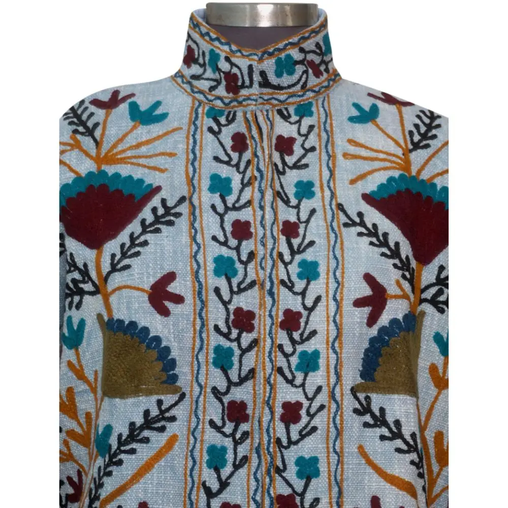 Blending traditional embroidery techniques with contemporary design, this jacket offers elegance, durability, and a statement-making look for any wardrobe.